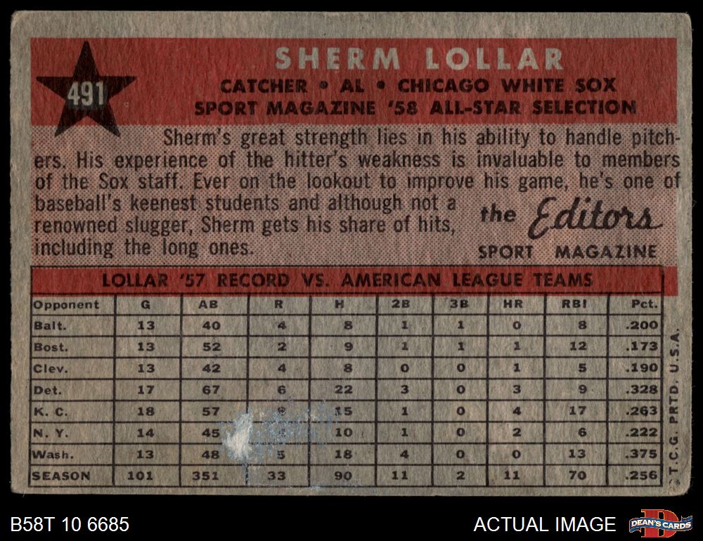 1958 Topps #491 - Sherm Lollar All-Star 1.5 - FAIR