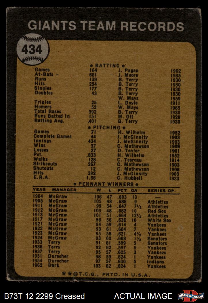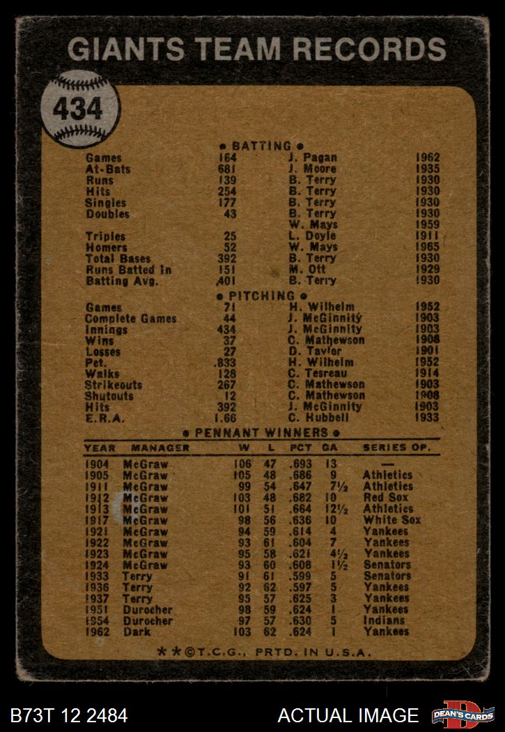 1973 Topps #434 Giants Team 1 - POOR
