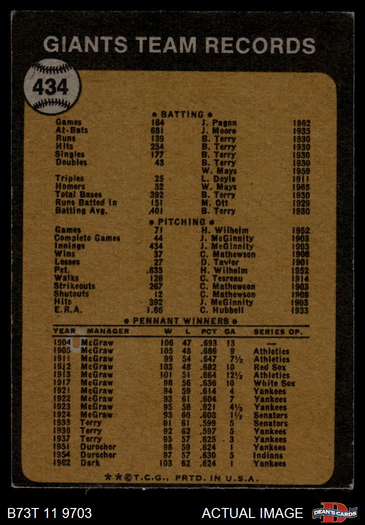 1973 Topps #434 Giants Team 3 - VG