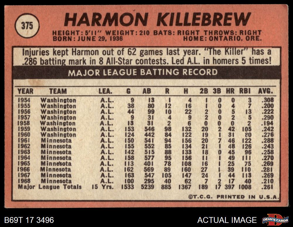 1969 Topps #375 Harmon Killebrew 3.5 - VG+