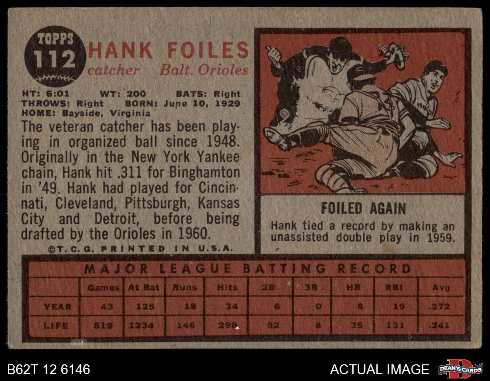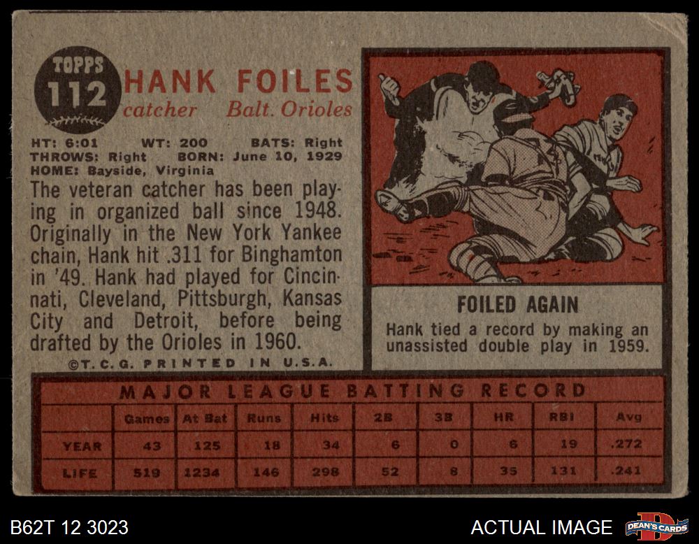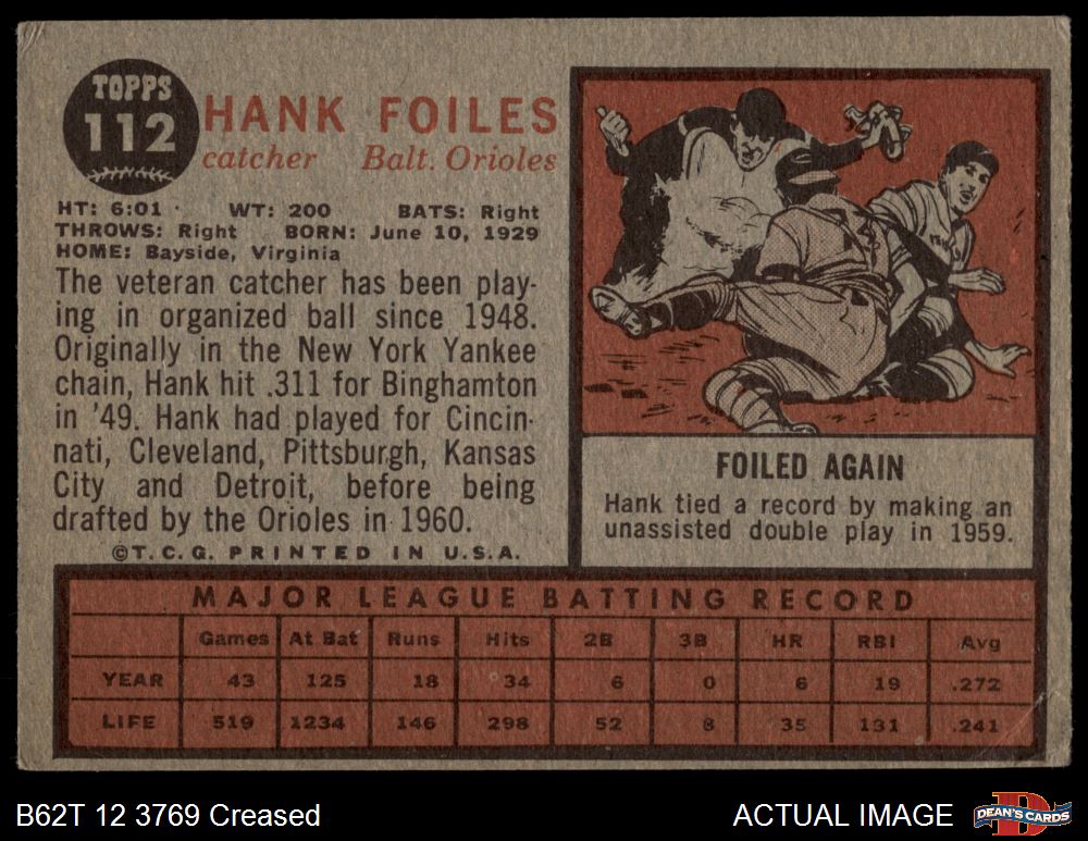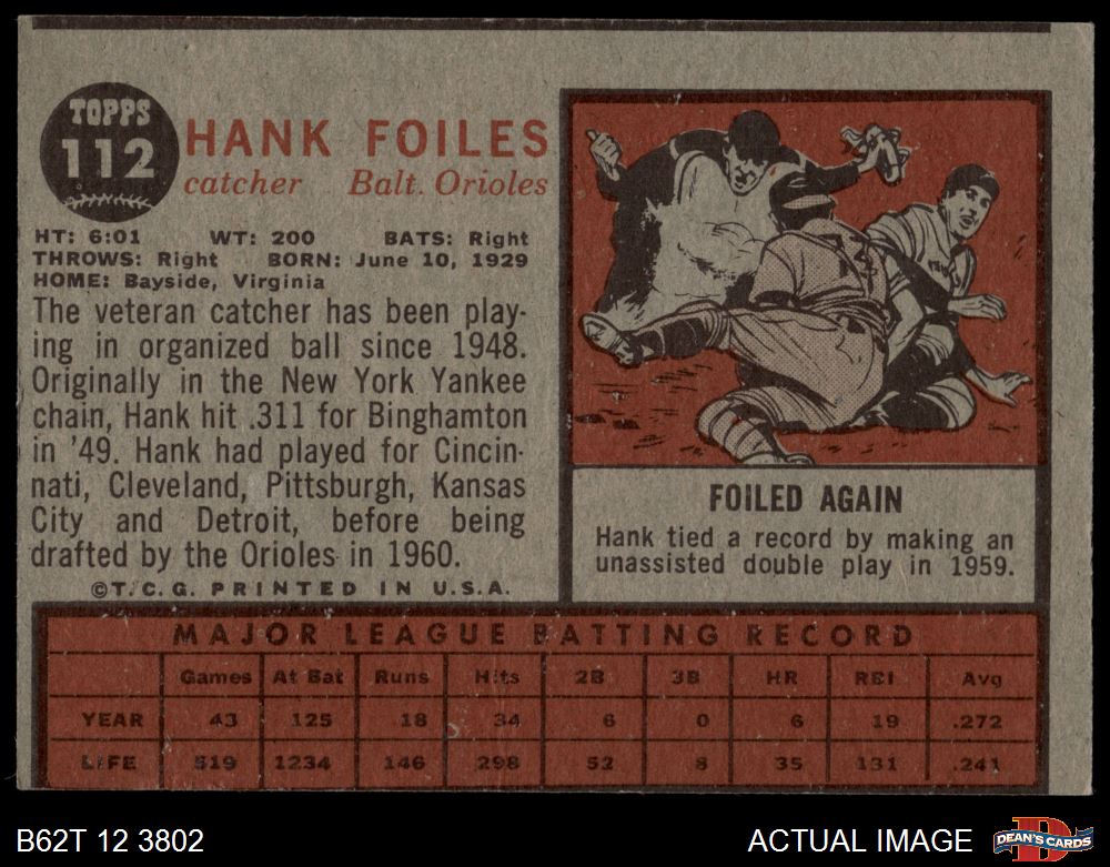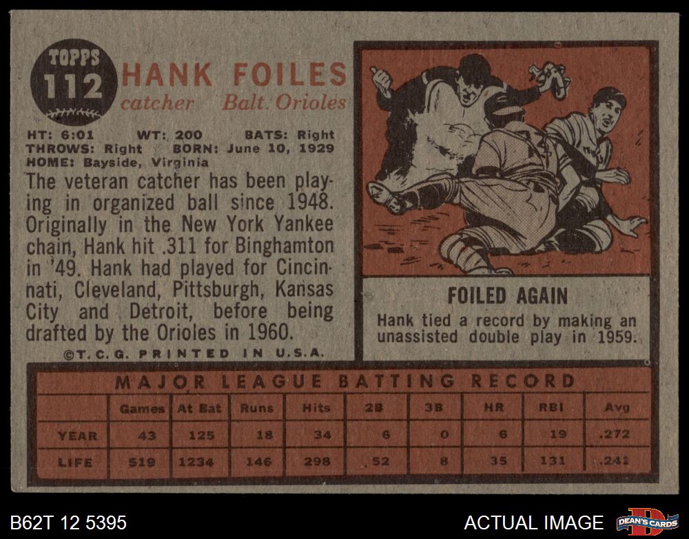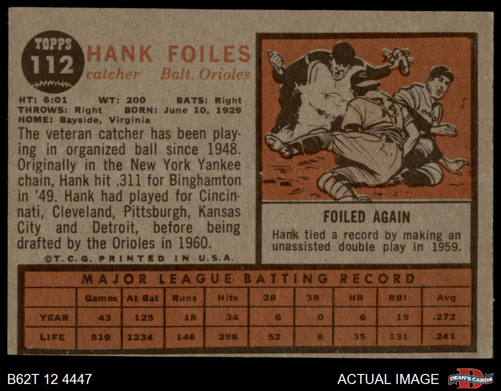 1962 Topps #112 NRM Hank Foiles