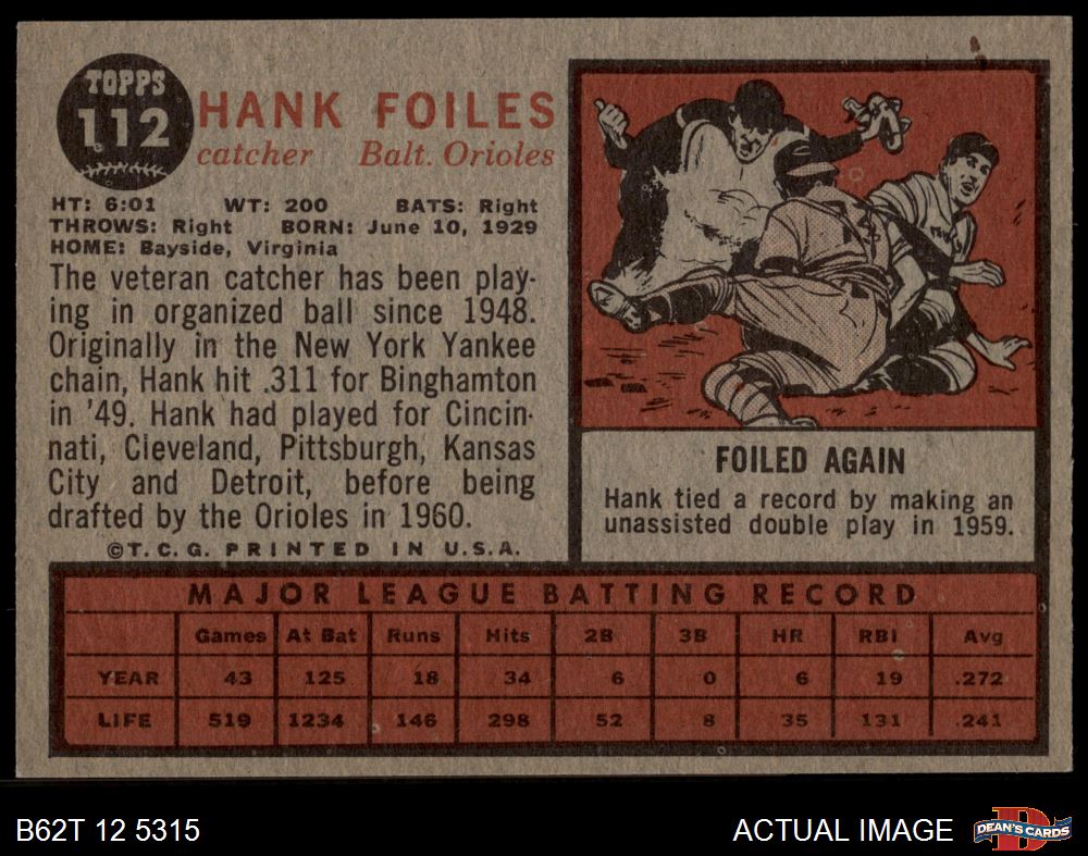 1962 Topps #112 NRM Hank Foiles 3 - VG