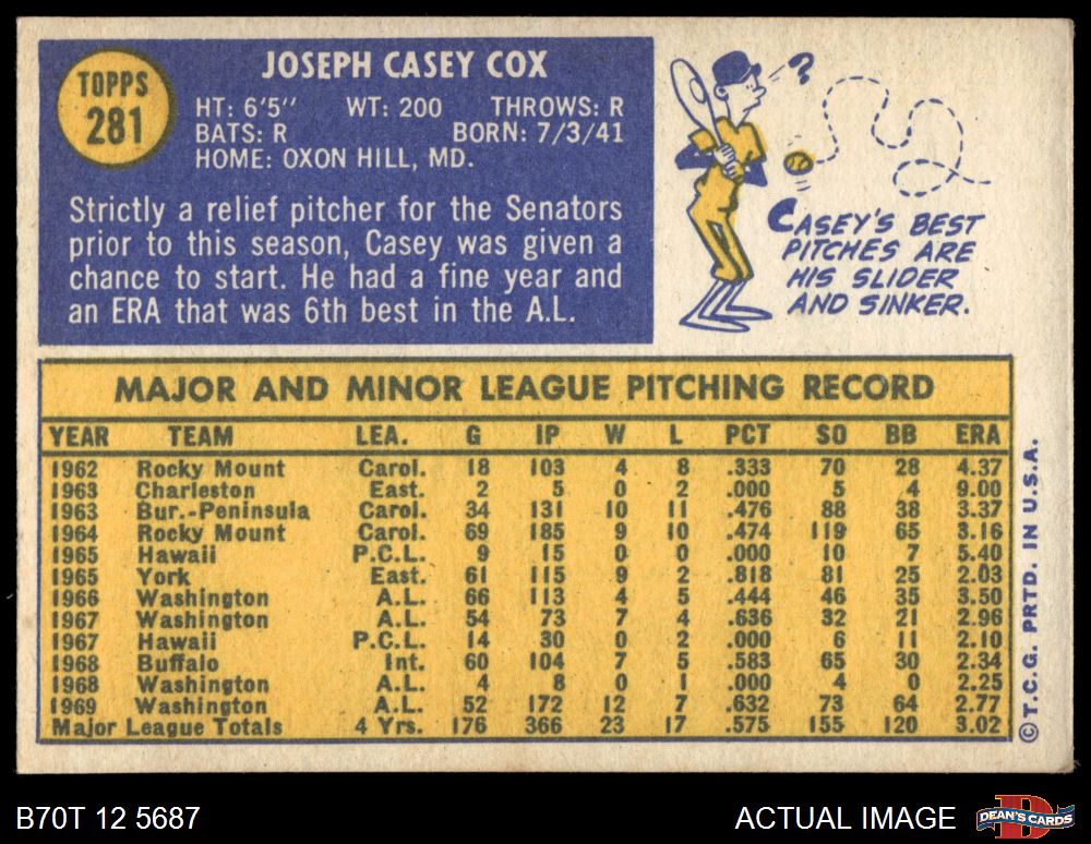 1970 Topps #281 Casey Cox 5 - EX