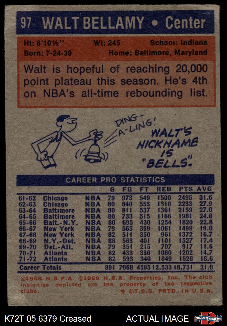 1972 Topps #97 Walt Bellamy 2 - GOOD