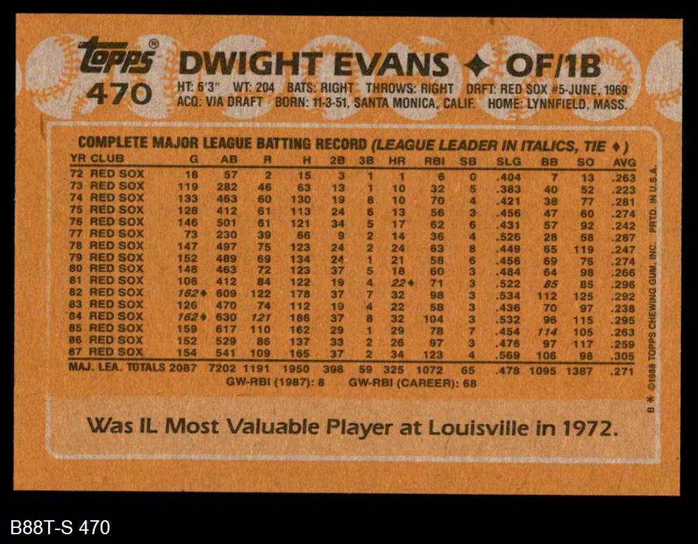 1988 Topps #470 Dwight Evans