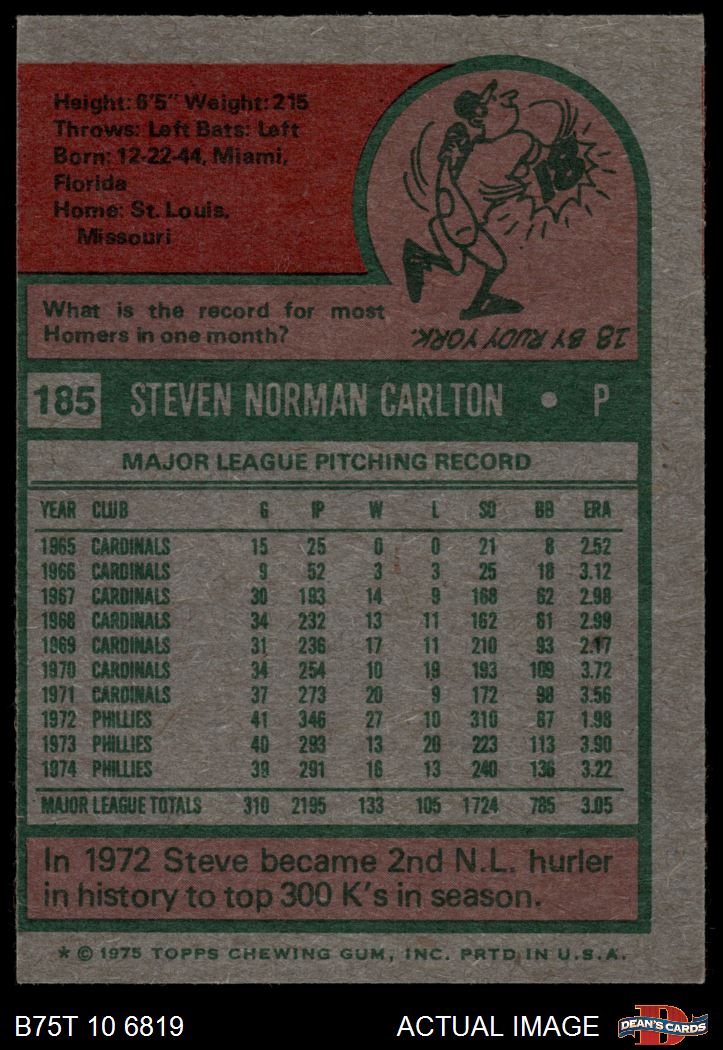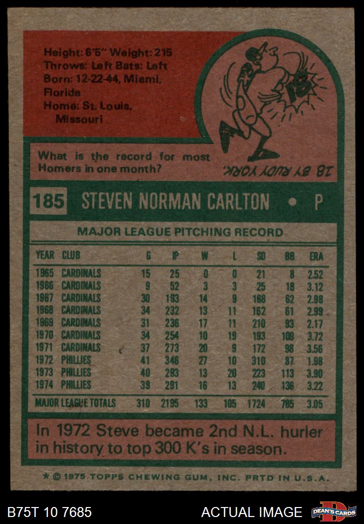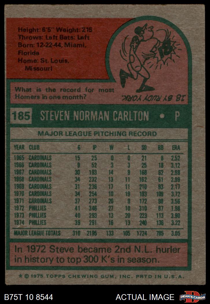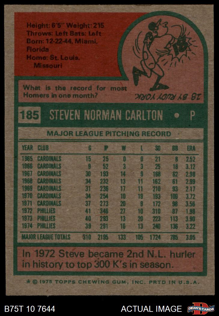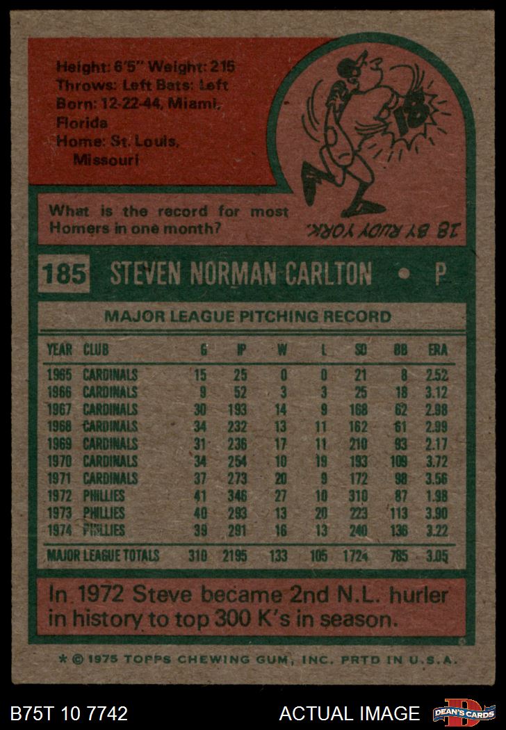 1975 Topps #185 Steve Carlton