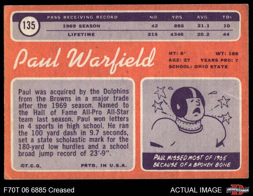 1970 Topps #135 Paul Warfield 2 - GOOD