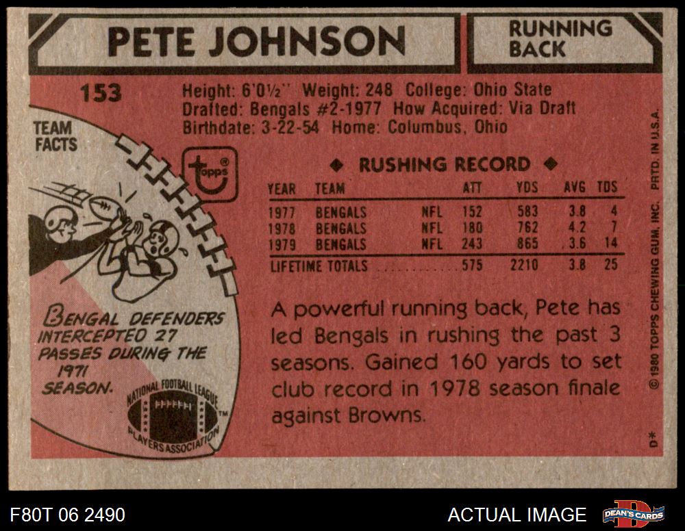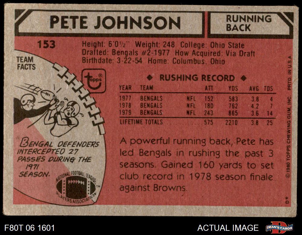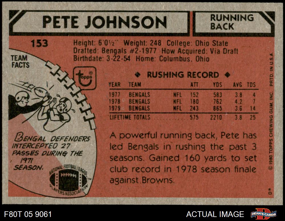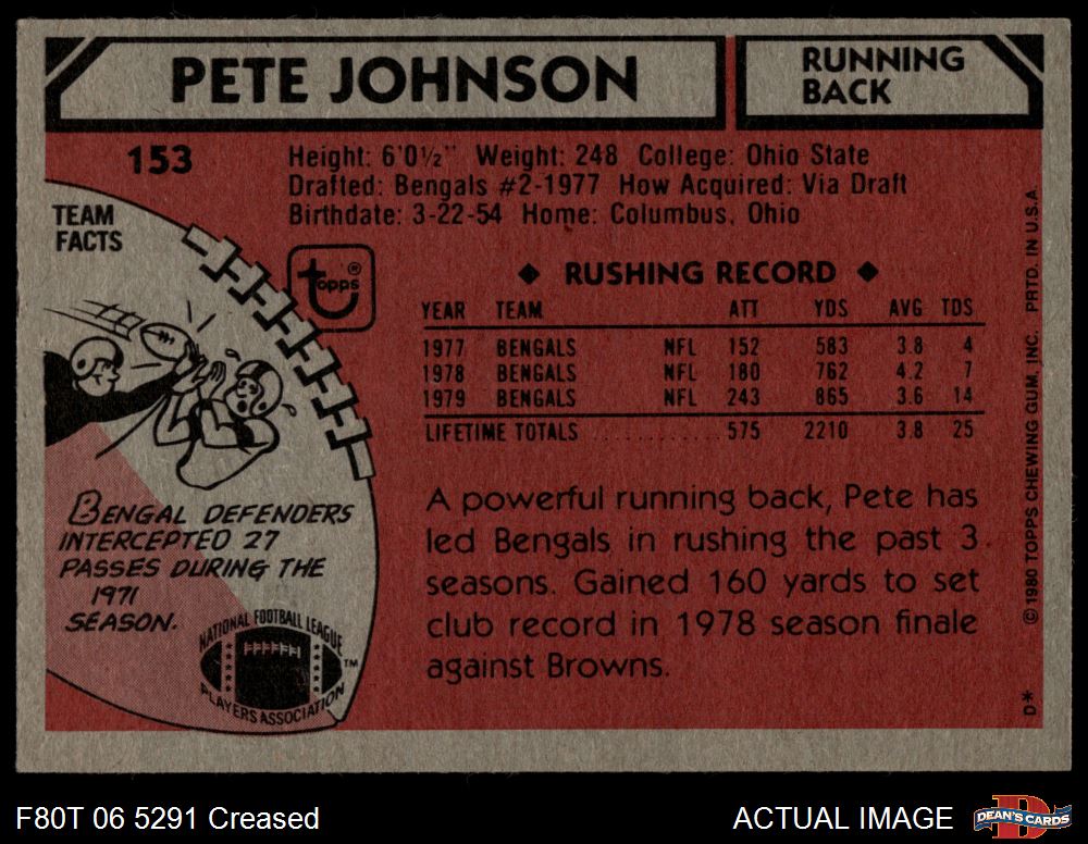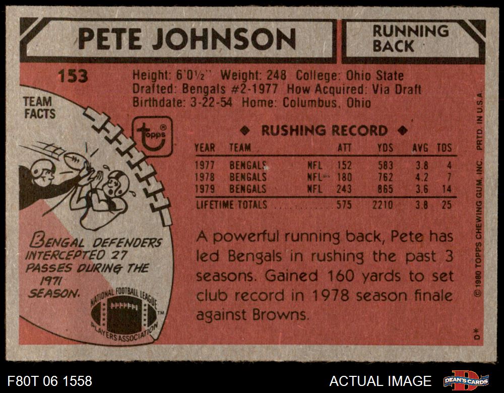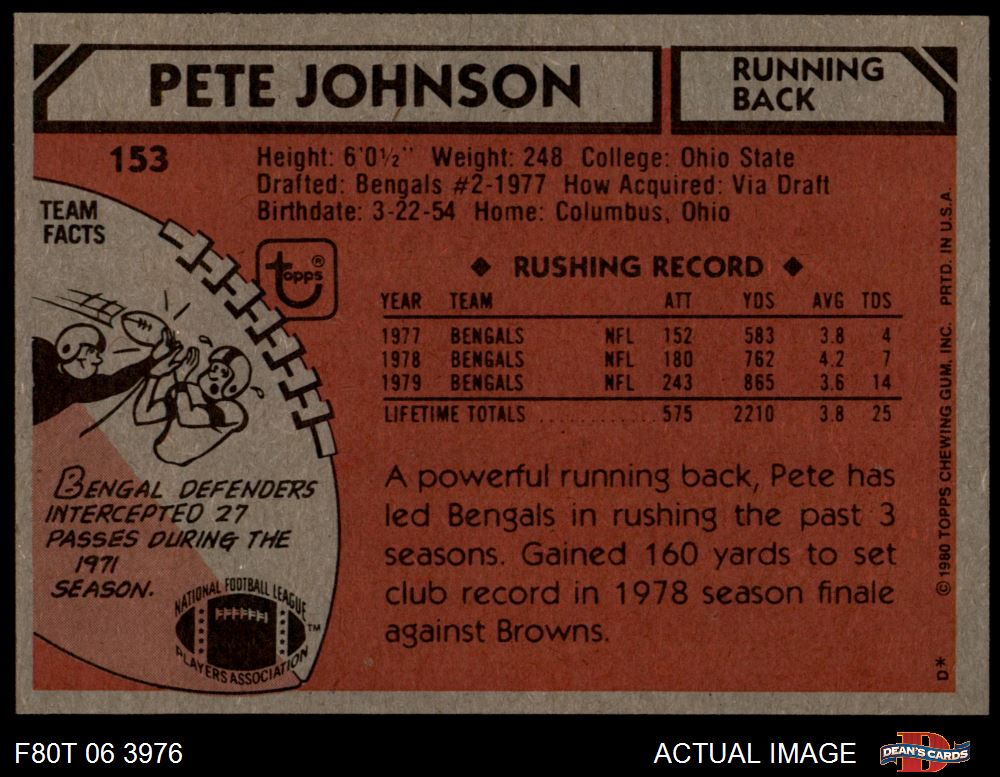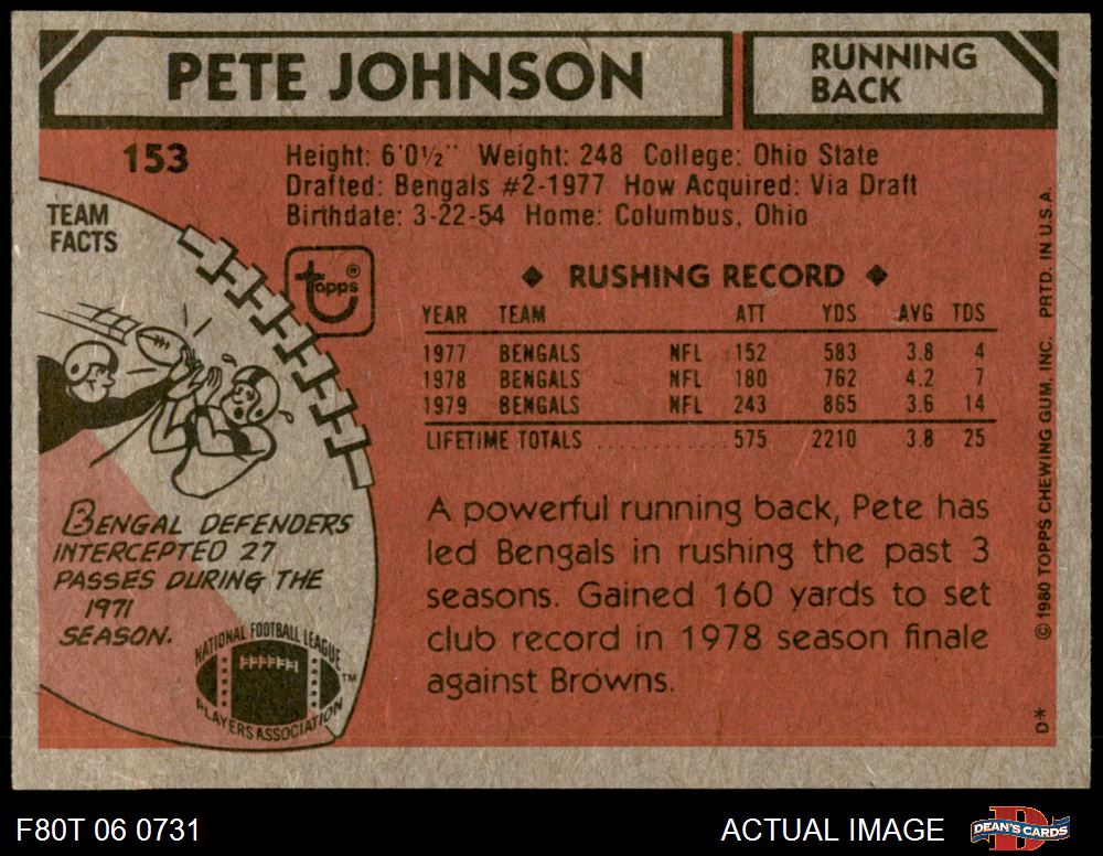 1980 Topps #153 Pete Johnson