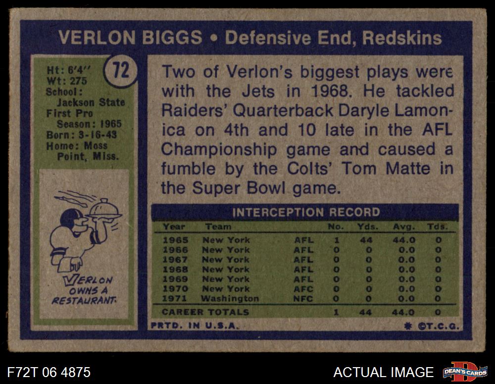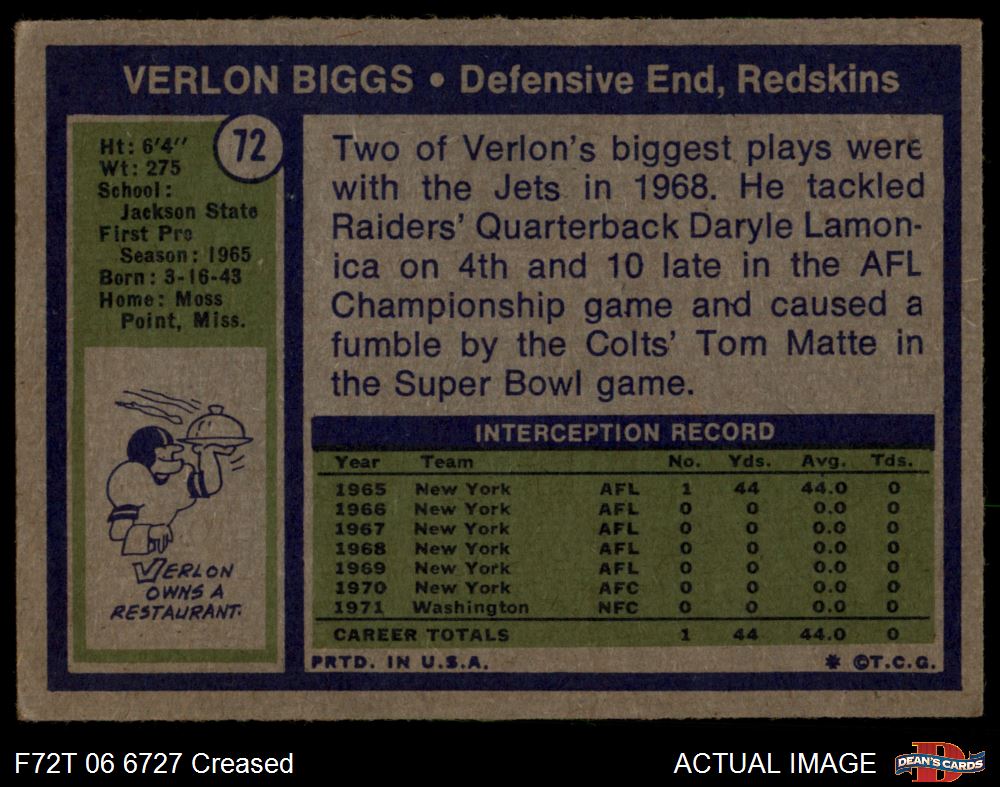 1972 Topps #72 Verlon Biggs Front Thumbnail