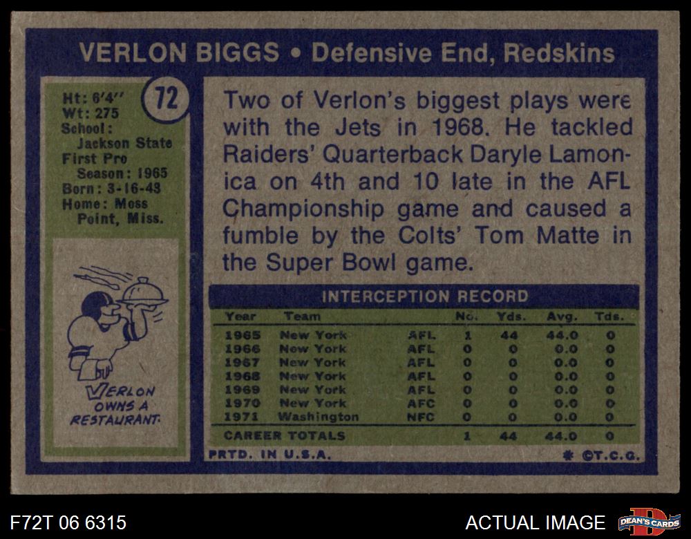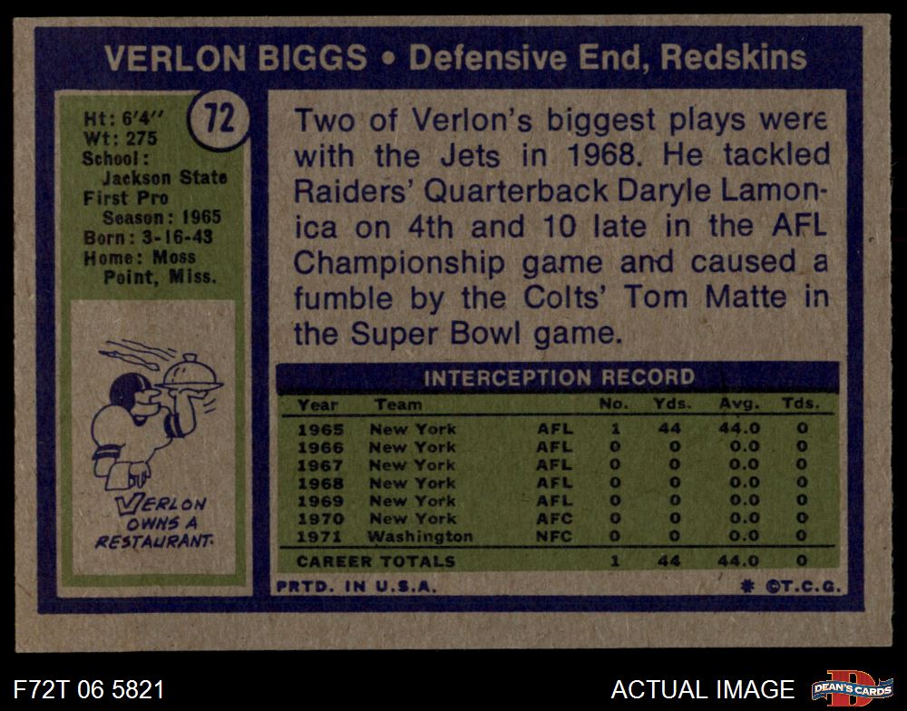 1972 Topps #72 Verlon Biggs 4 - VG/EX