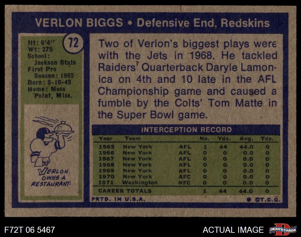 1972 Topps #72 Verlon Biggs 6 - EX/MT