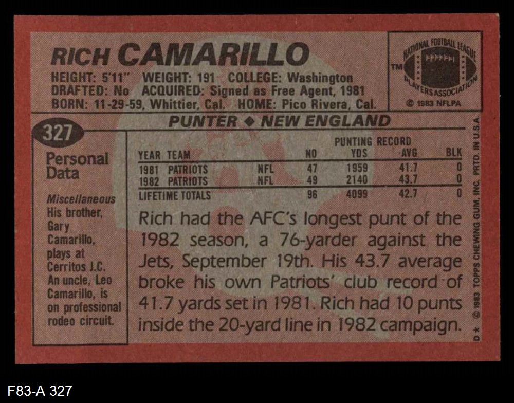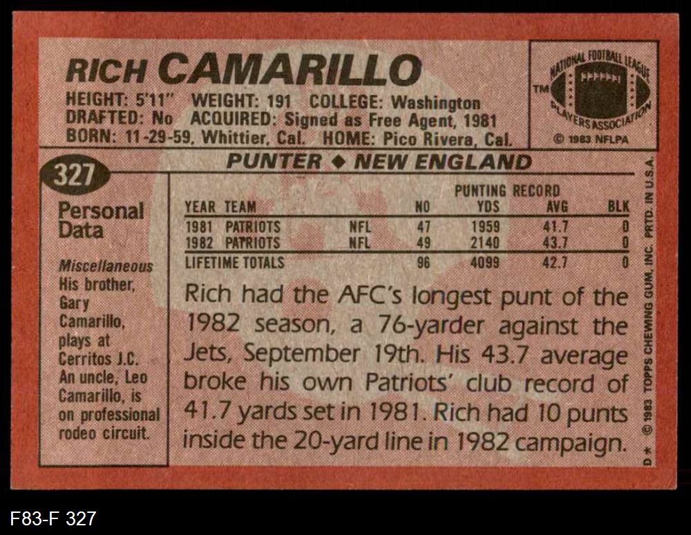 1983 Topps #327 Rich Camarillo