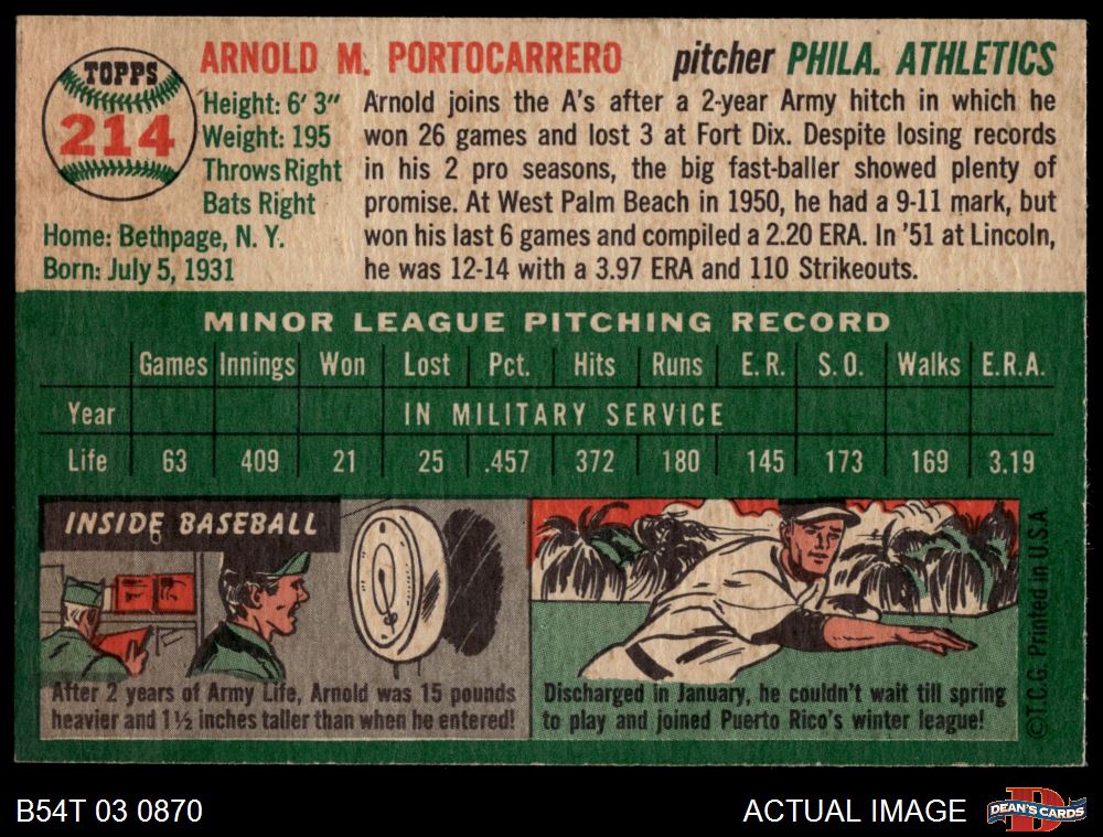 1954 Topps #214 Arnie Portocarrero 6 - EX/MT