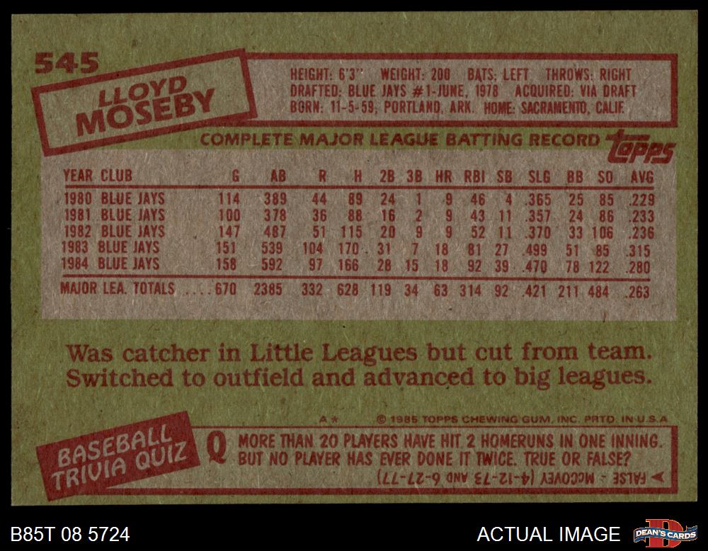 1985 Topps #545 Lloyd Moseby 5 - EX