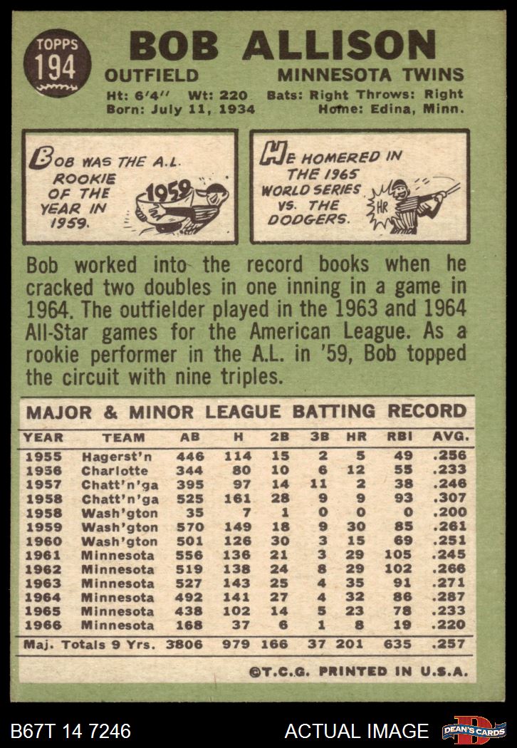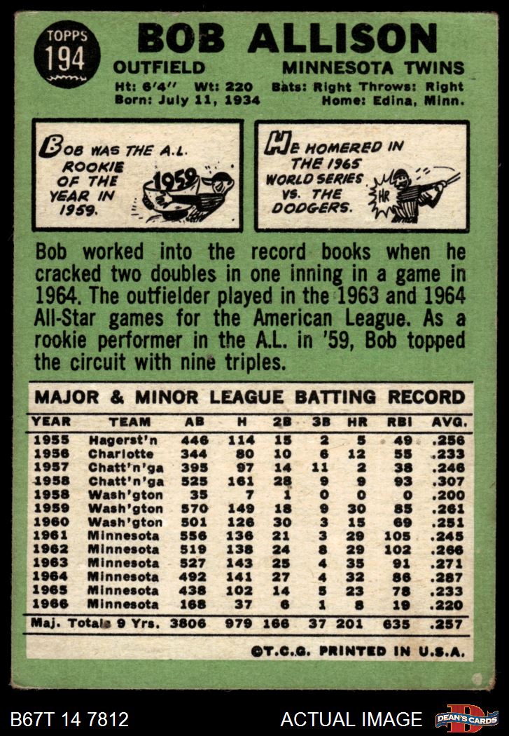 1967 Topps #194 Bob Allison