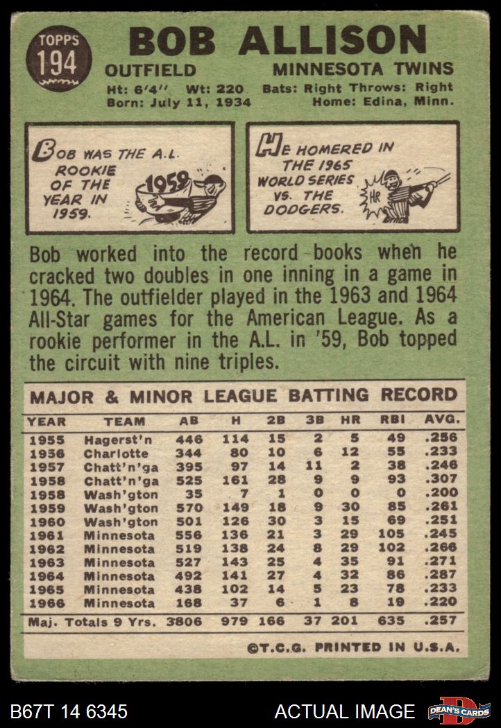 1967 Topps #194 Bob Allison 2 - GOOD