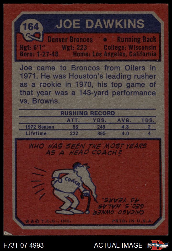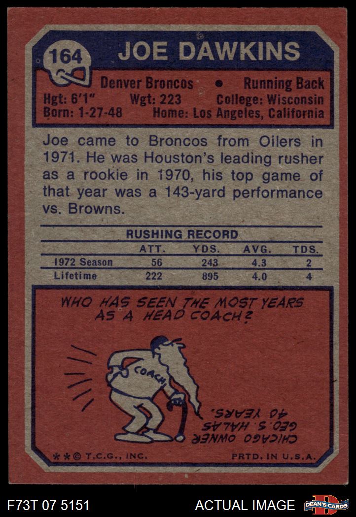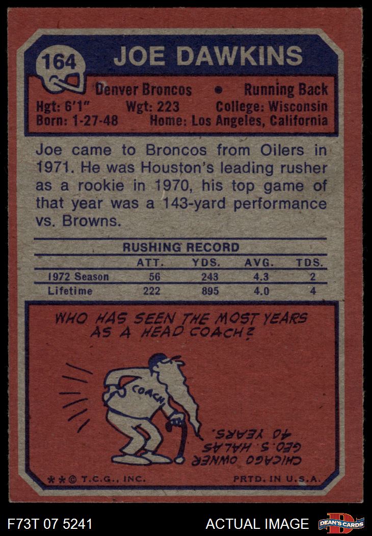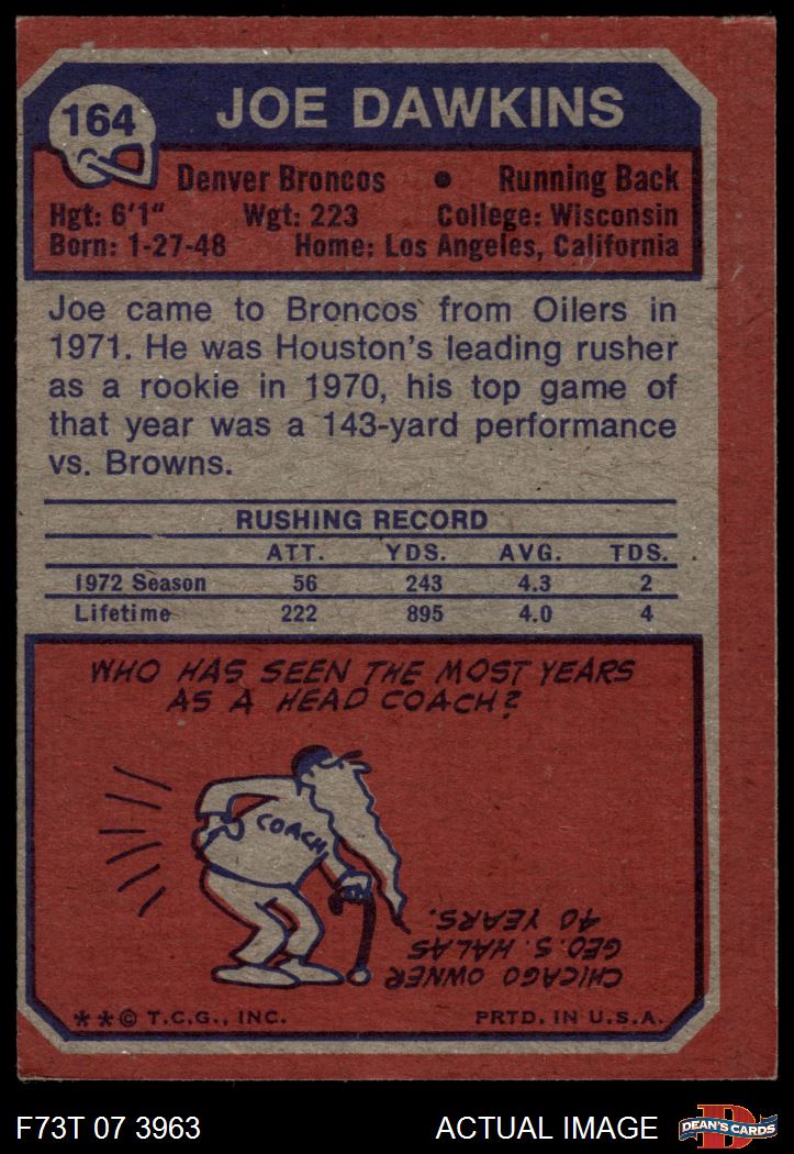 1973 Topps #164 Joe Dawkins