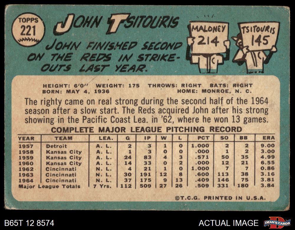1965 Topps #221 John Tsitouris 1.5 - FAIR