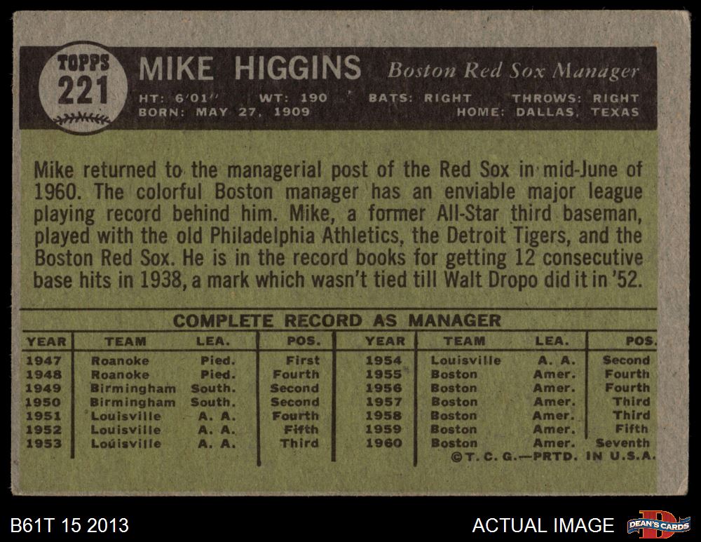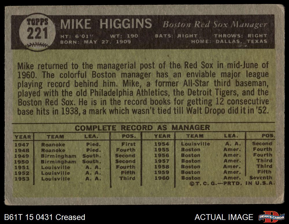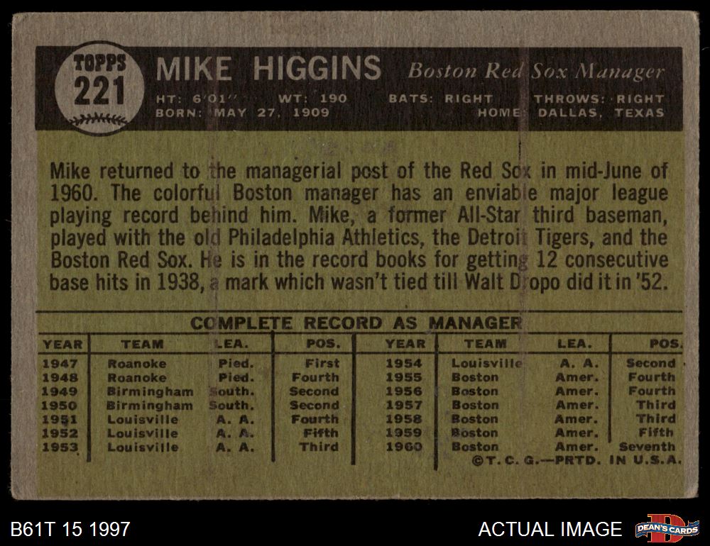 1961 Topps #221 Mike Higgins 2 - GOOD
