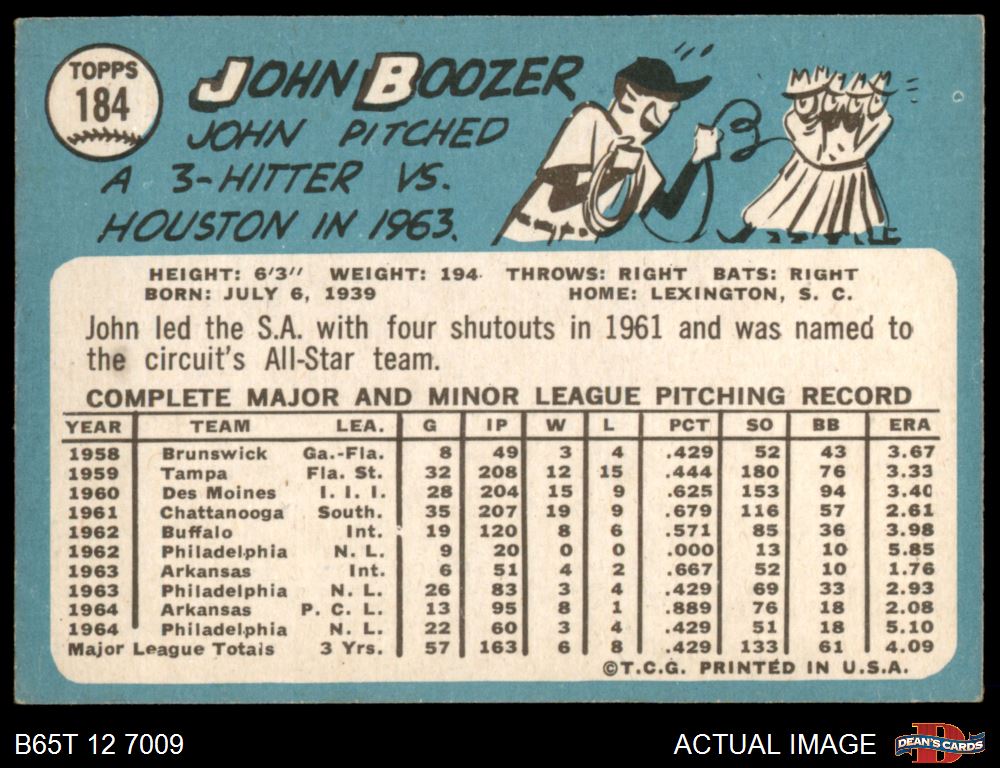 1965 Topps #184 May or may not have break in vertical line under the "D" in the word AND on back John Boozer 3 - VG