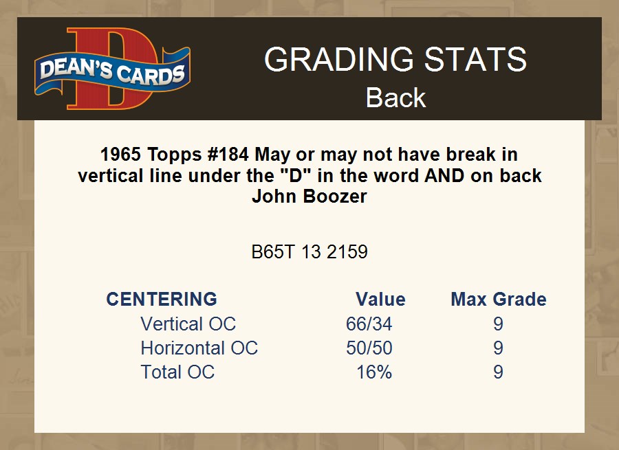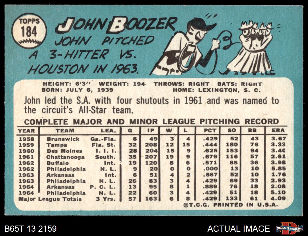 1965 Topps #184 May or may not have break in vertical line under the "D" in the word AND on back John Boozer 5 - EX