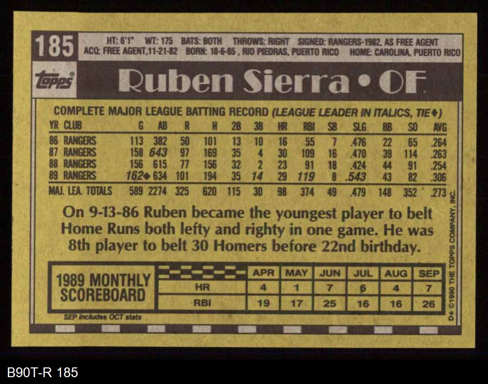1990 Topps #185 Ruben Sierra