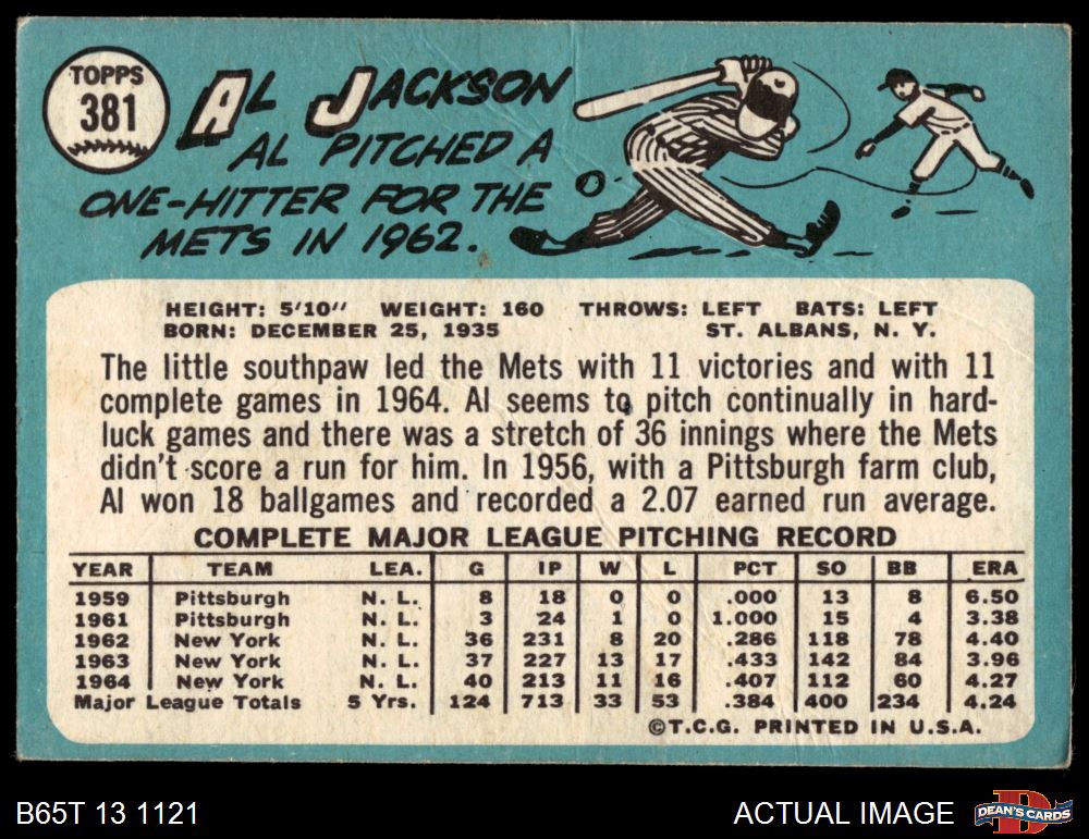 1965 Topps #381 Al Jackson 1.5 - FAIR