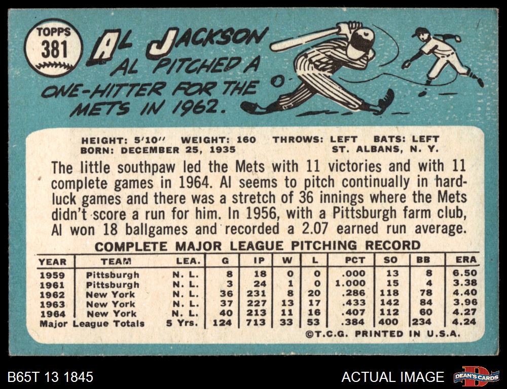 1965 Topps #381 Al Jackson 4 - VG/EX