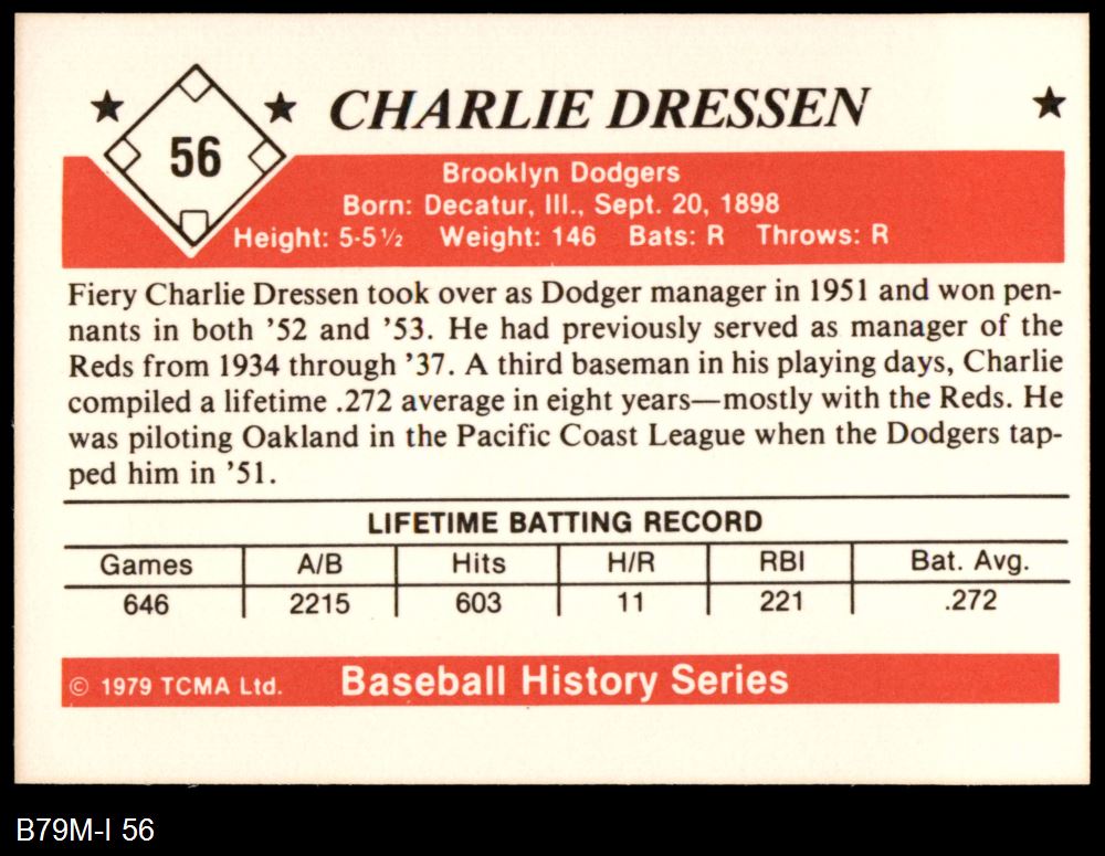 1979 TCMA The 1950's #56 Chuck Dressen
