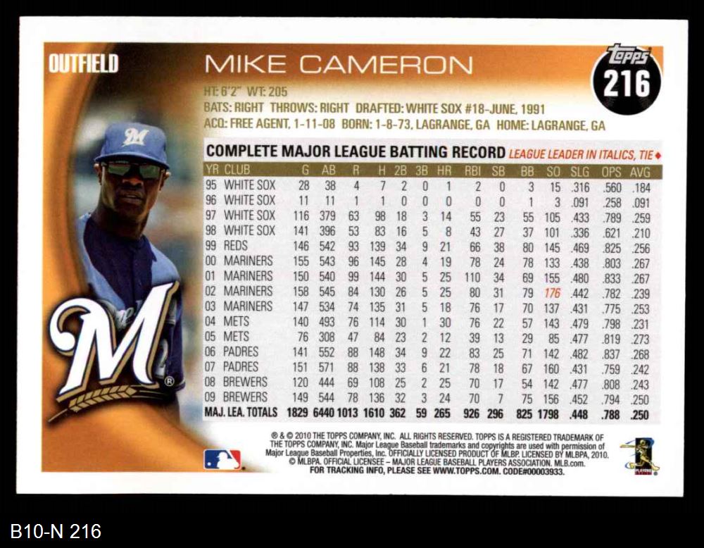 2010 Topps #216 Mike Cameron 8 - NM/MT