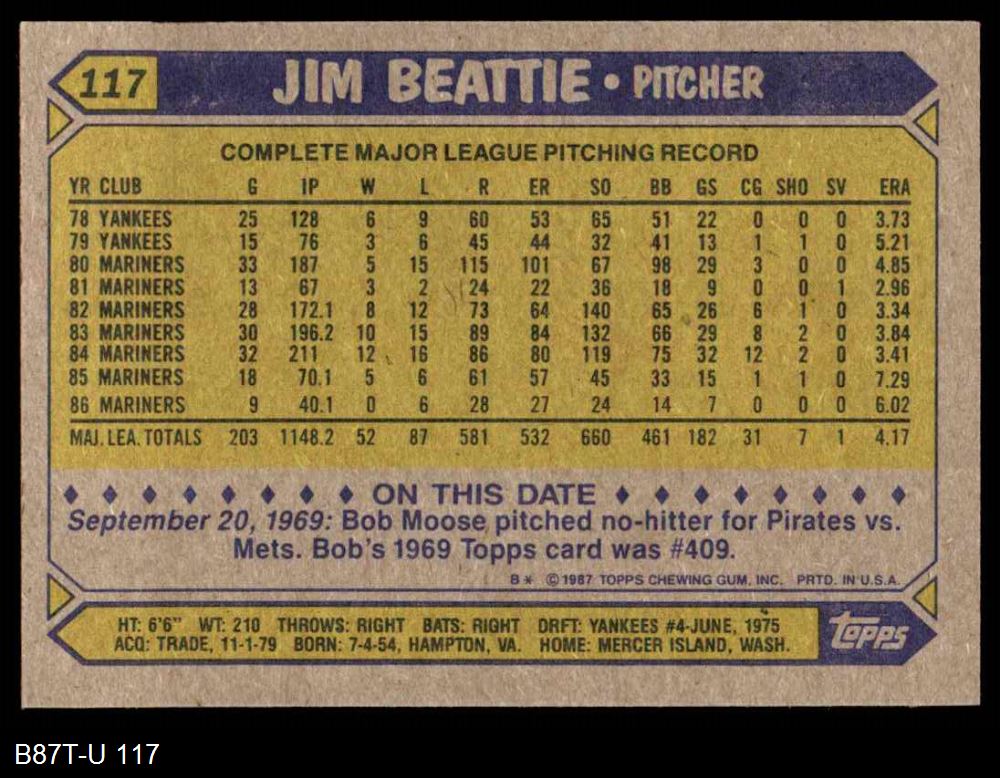 1987 Topps #117 Jim Beattie
