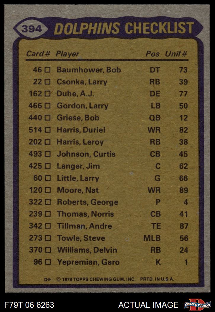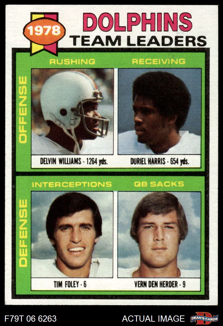 1979 Topps #394 - Devin Williams / Duriel Harris / Tim Foley / Vern den Herder Dolphins Team Leaders & Checklist 7 - NM