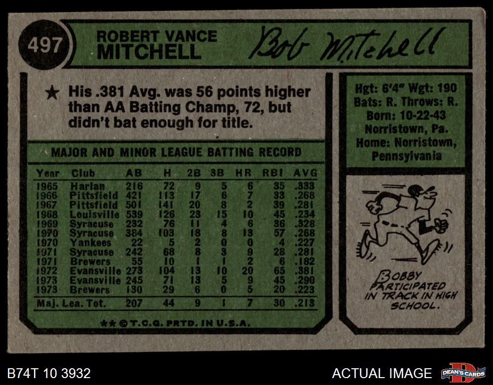 1974 Topps #497 Bobby Mitchell 4 - VG/EX