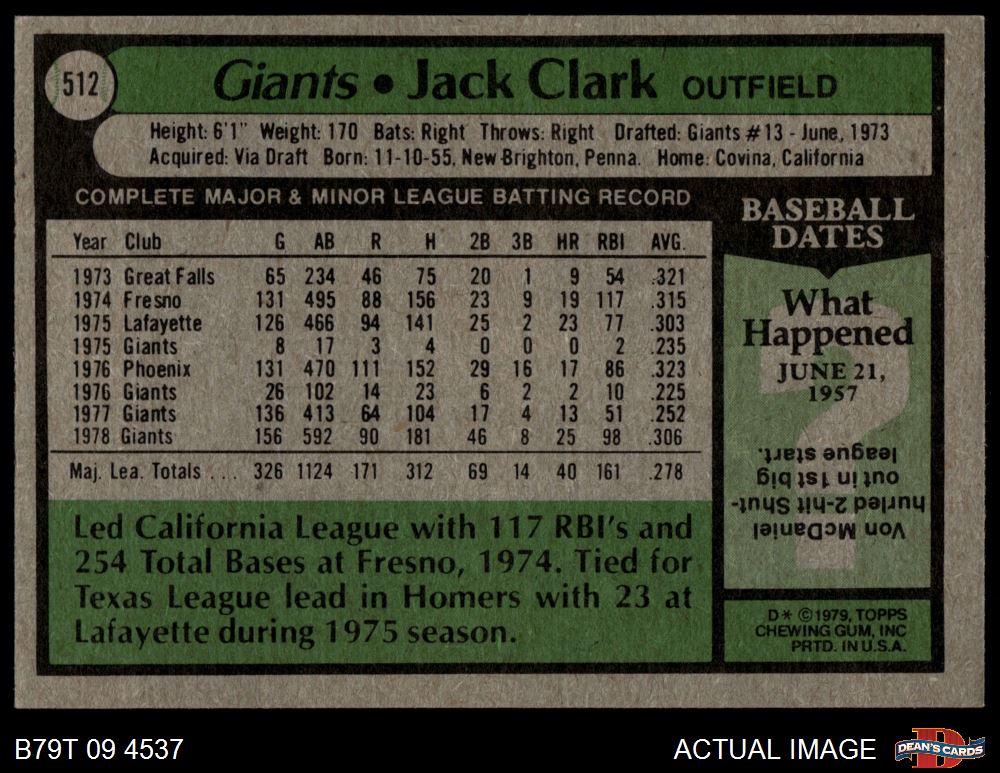1979 Topps #512 Jack Clark 5 - EX