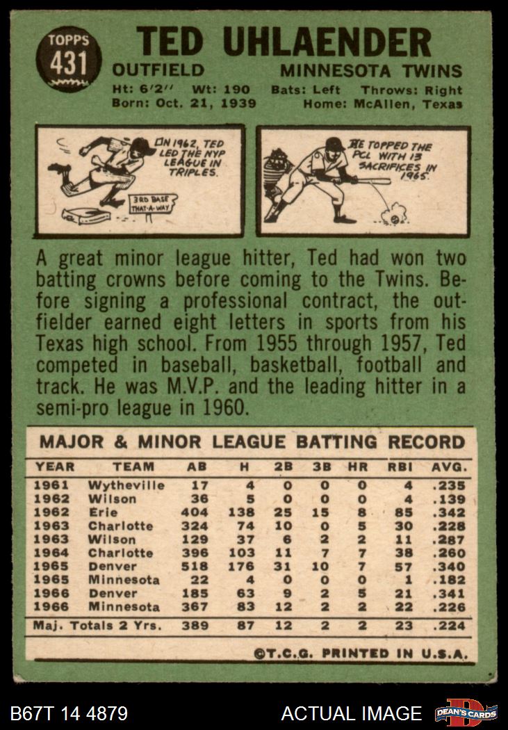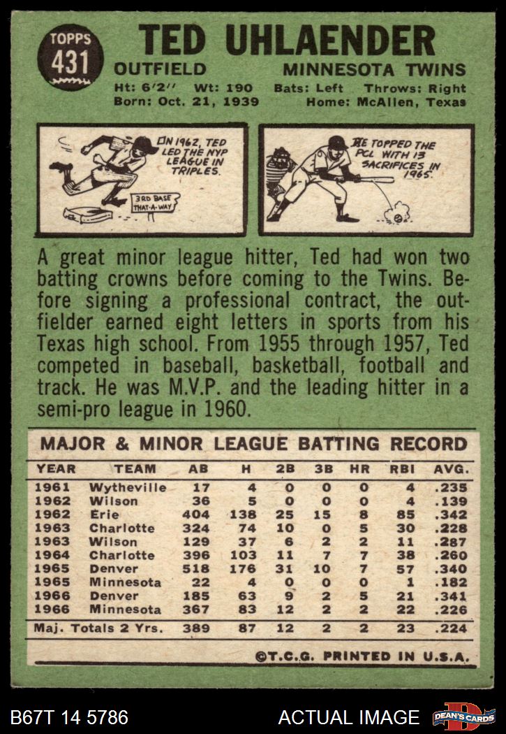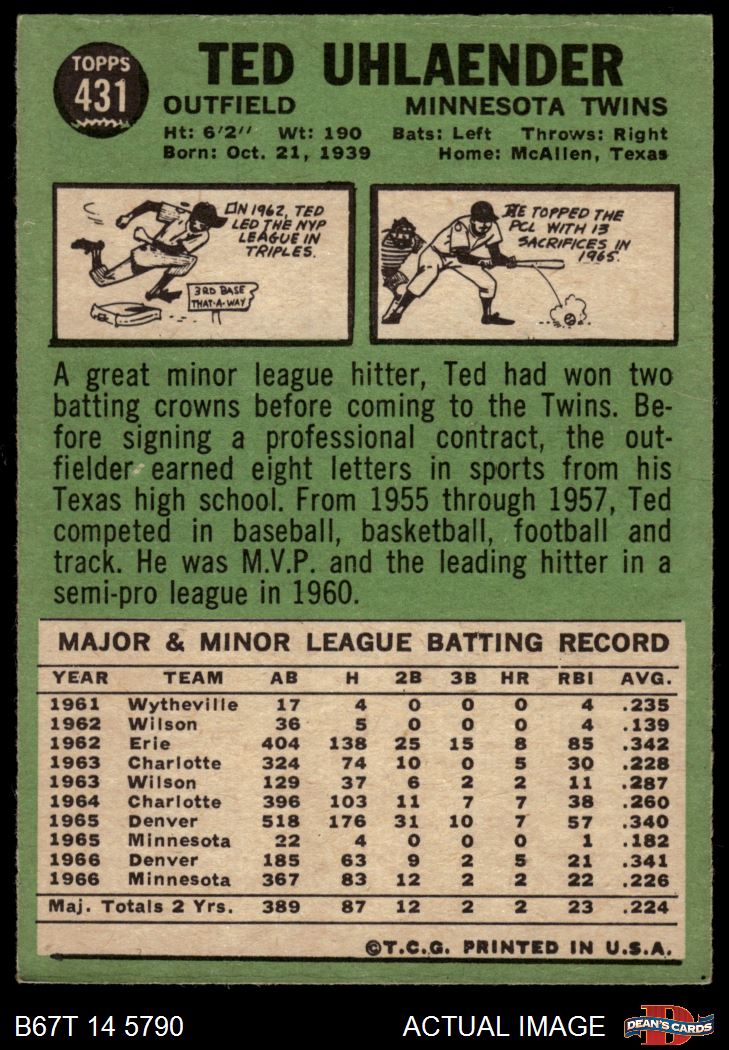 1967 Topps #431 Ted Uhlaender 4 - VG/EX