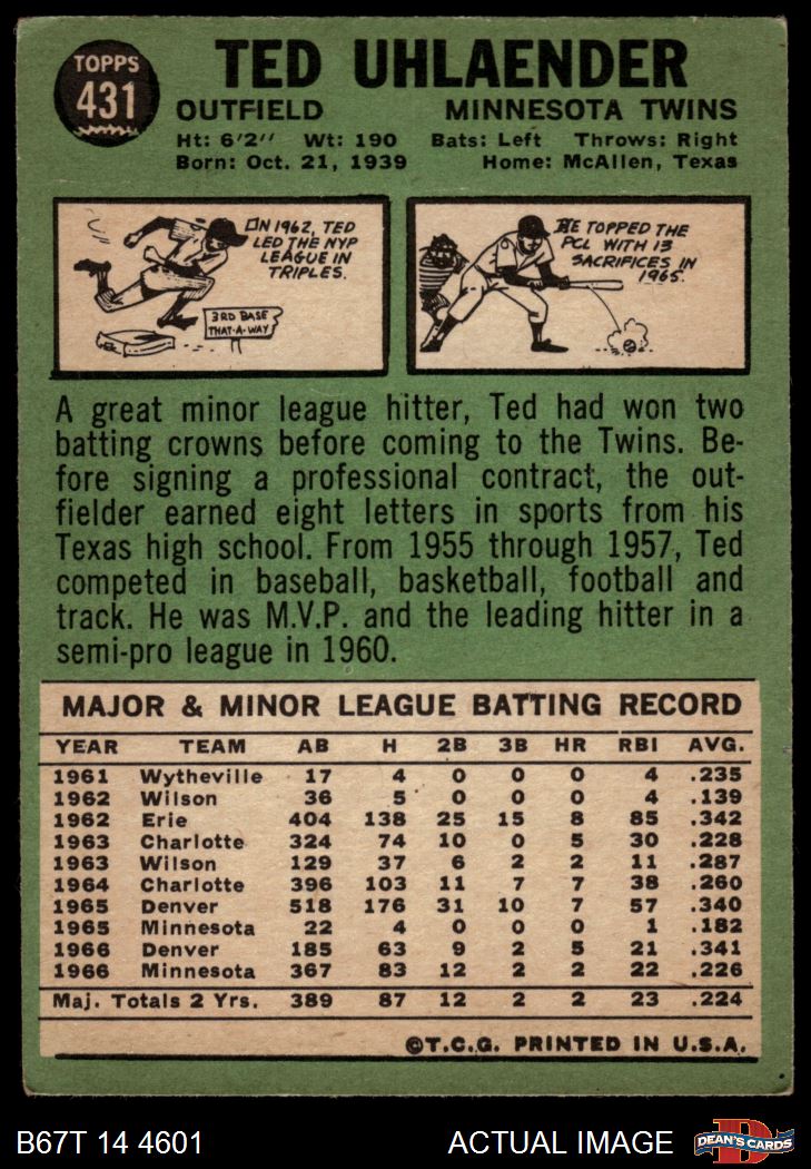 1967 Topps #431 Ted Uhlaender 4.5 - VG/EX+