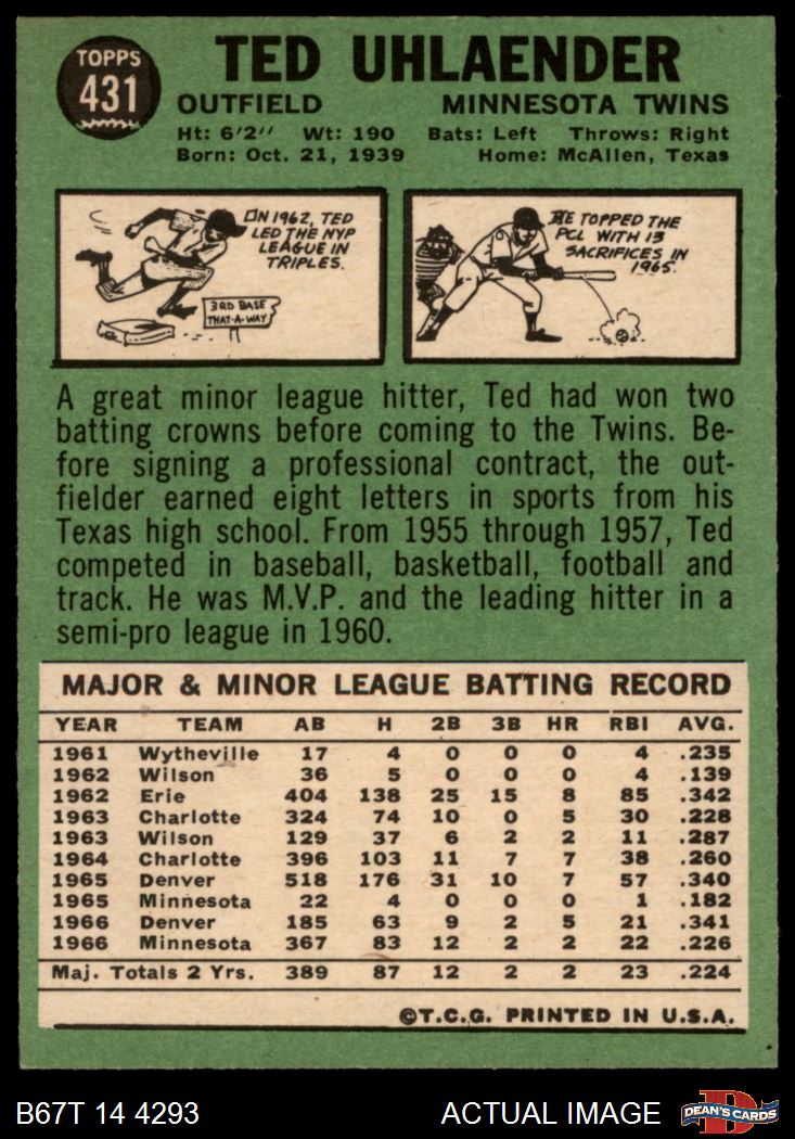 1967 Topps #431 Ted Uhlaender 7 - NM