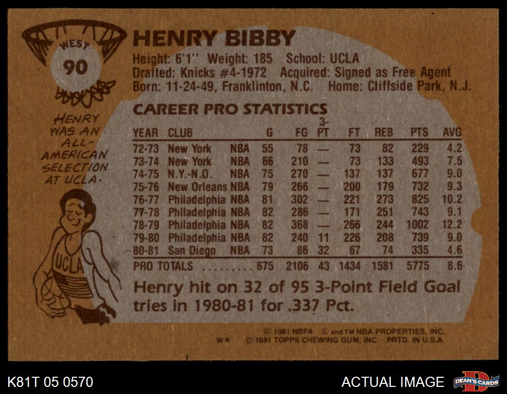 1981 Topps #90 W Henry Bibby 8 - NM/MT
