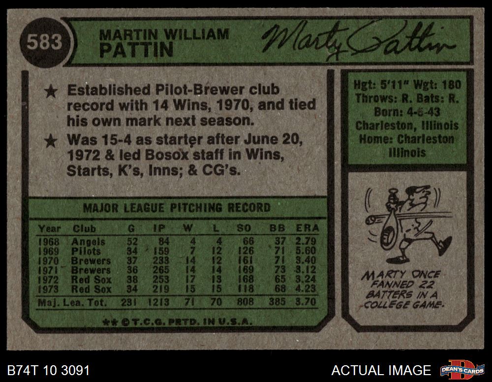 1974 Topps #583 Marty Pattin 6 - EX/MT