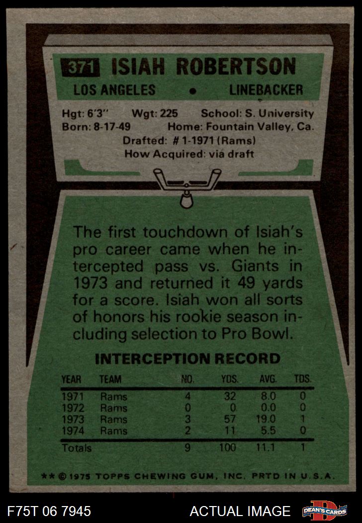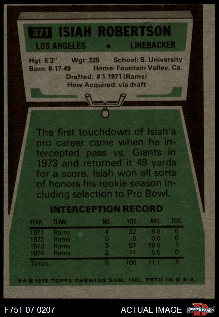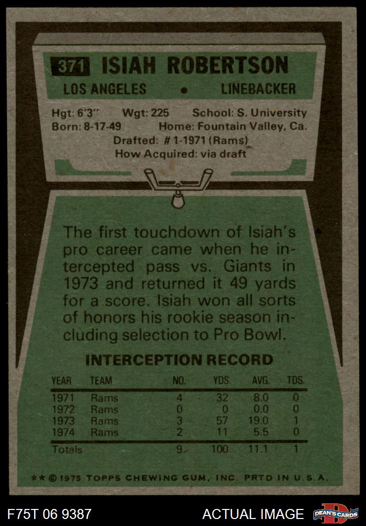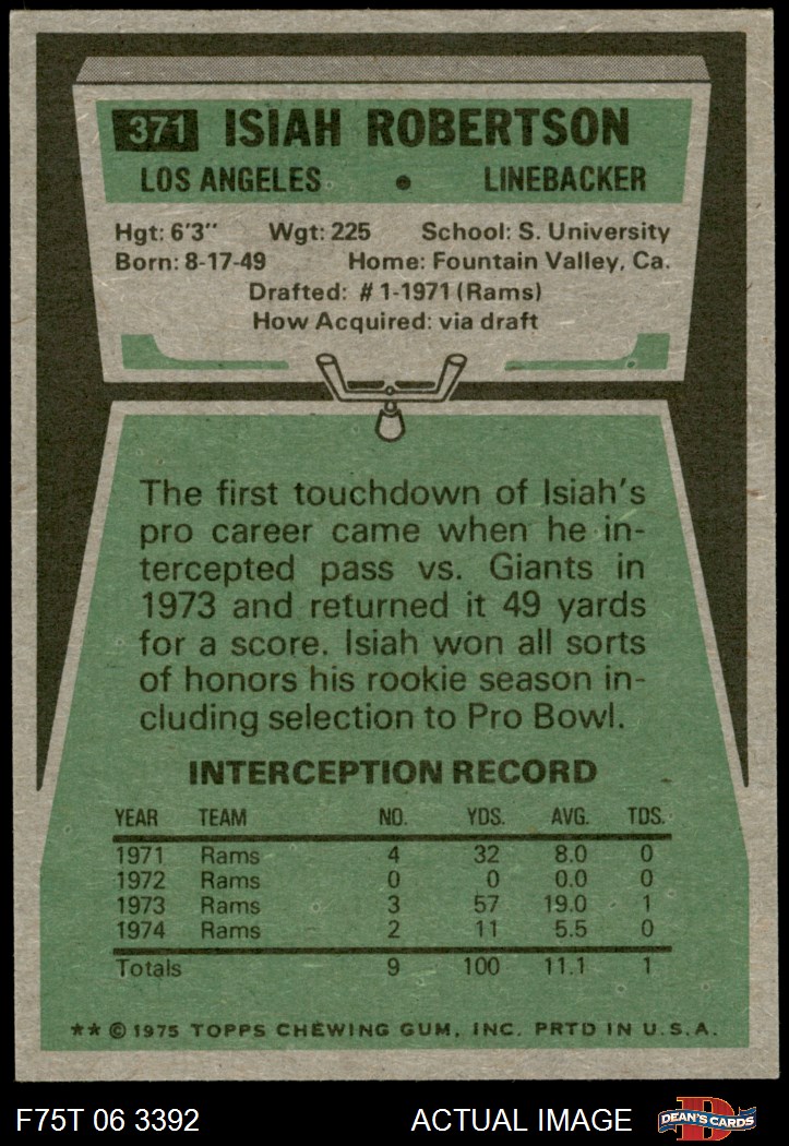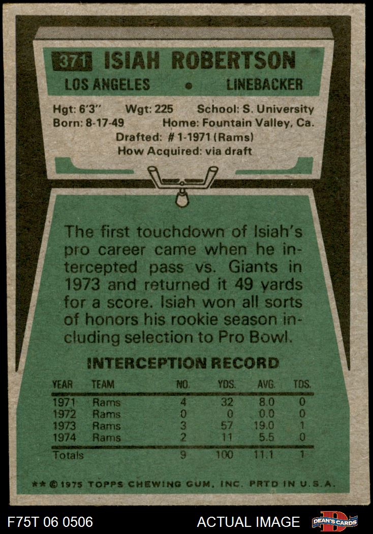 1975 Topps #371 Isiah Robertson