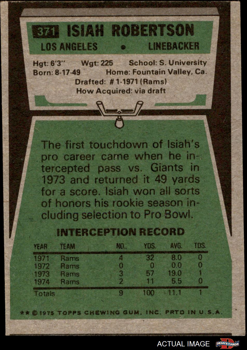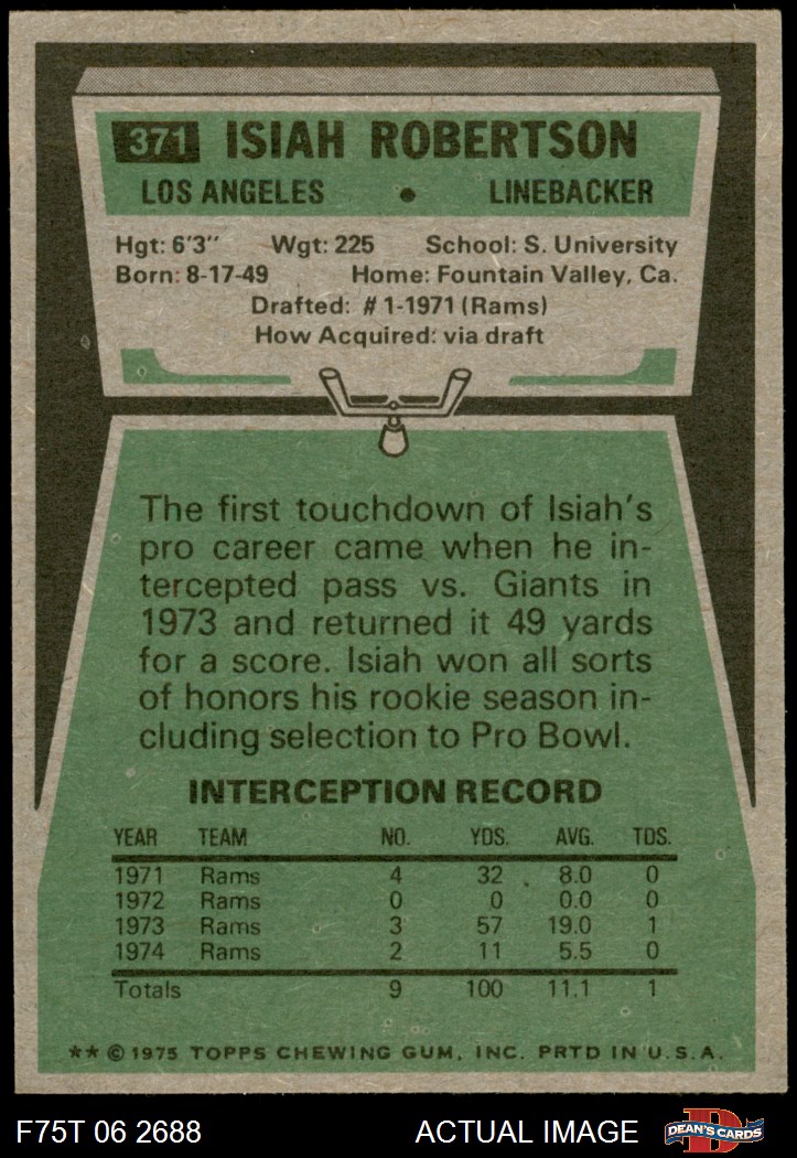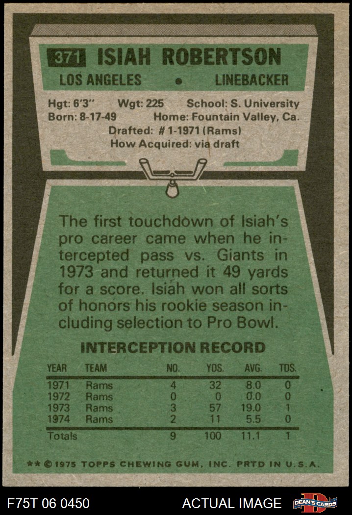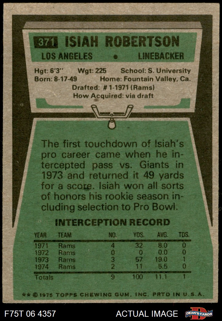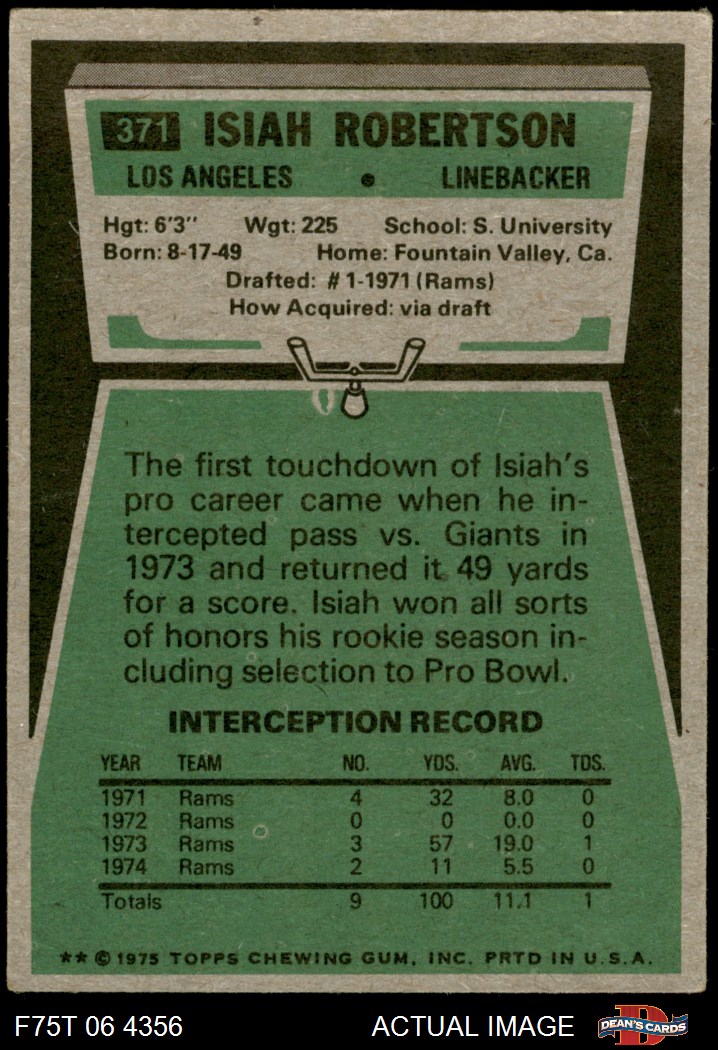 1975 Topps #371 Isiah Robertson