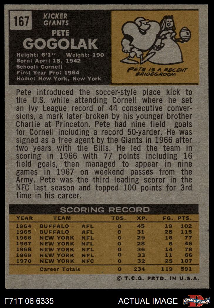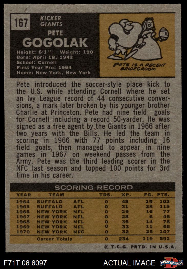 1971 Topps #167 Pete Gogolak 6 - EX/MT