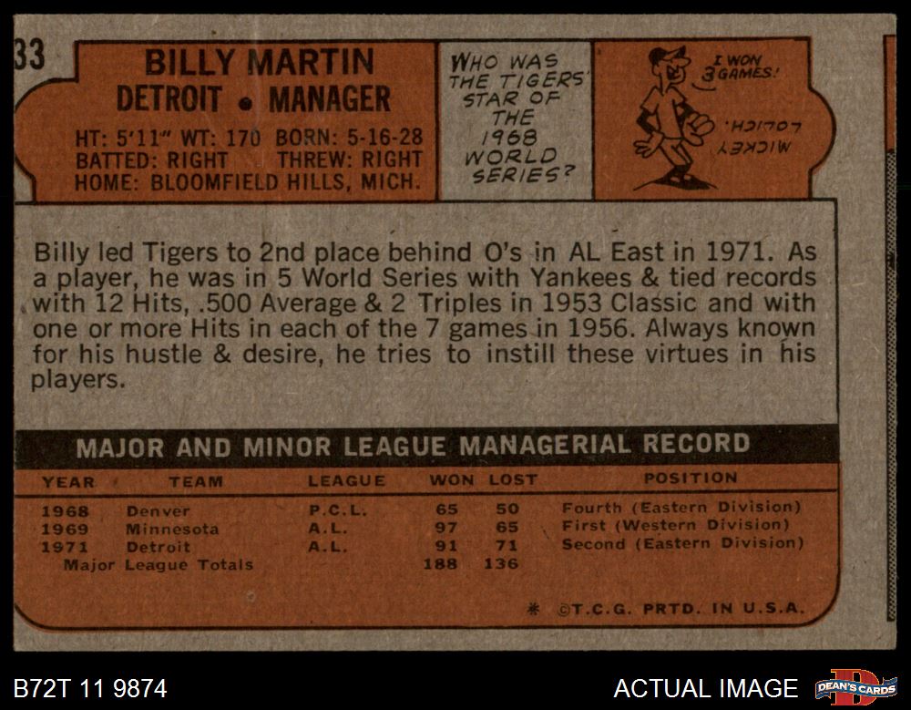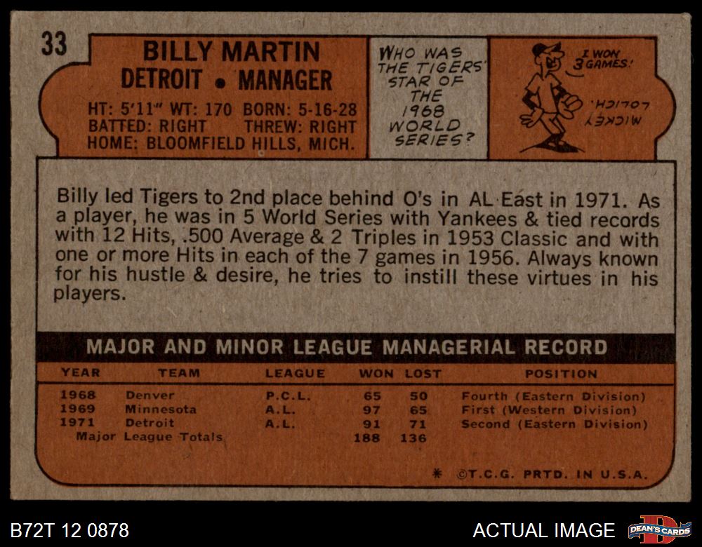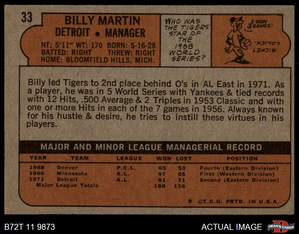 1972 Topps #33 Billy Martin 1.5 - FAIR