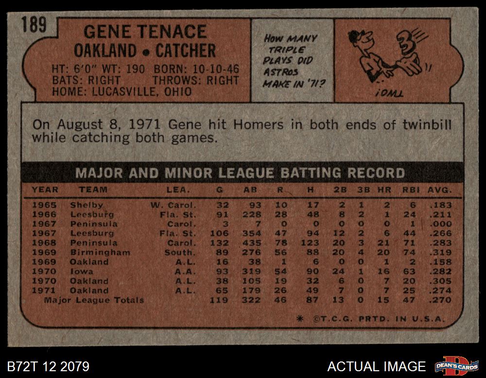 1972 Topps #189 Gene Tenace 5 - EX
