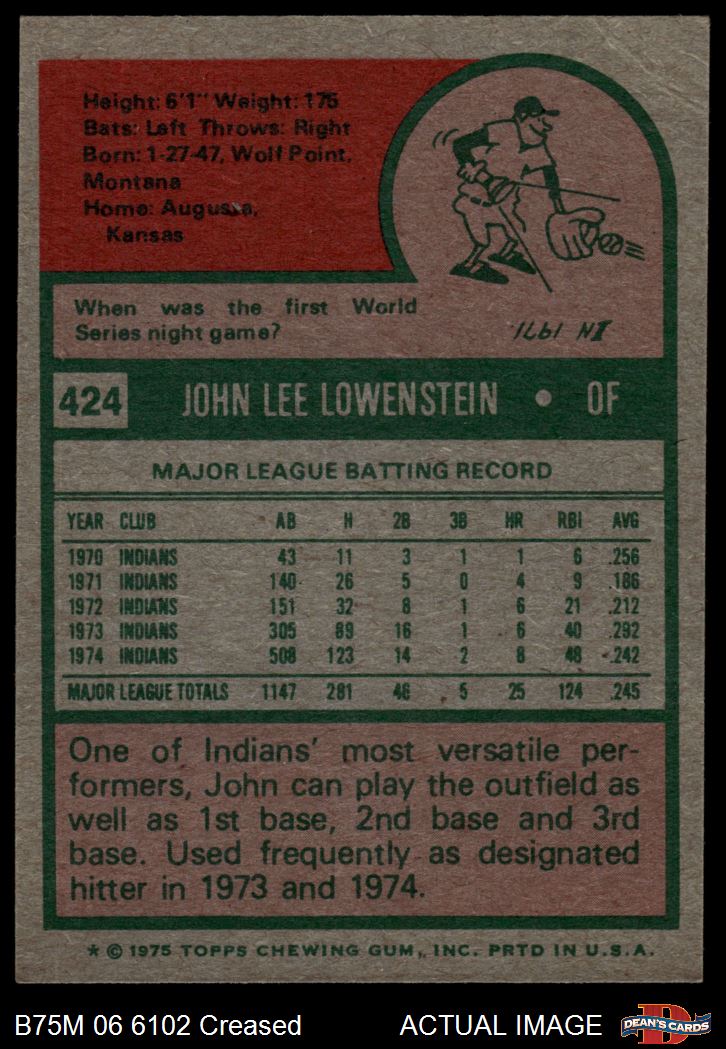 1975 Topps Mini #424 John Lowenstein 3 - VG