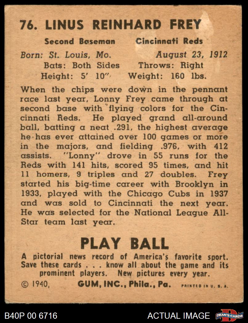 1940 Play Ball #76 Lonnie Frey 4 - VG/EX