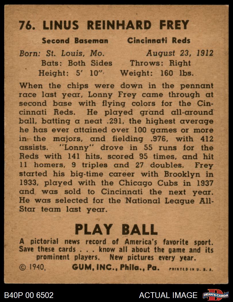 1940 Play Ball #76 Lonnie Frey 6 - EX/MT
