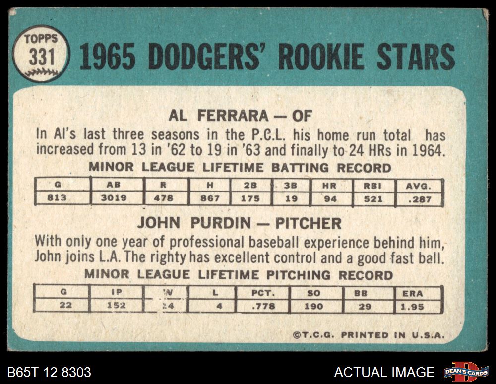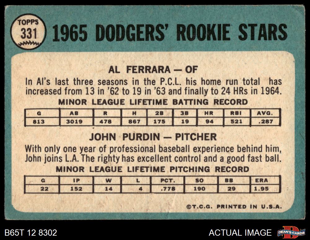 1965 Topps #331 - Al Ferrara / John Purdin Dodgers Rookies 2 - GOOD