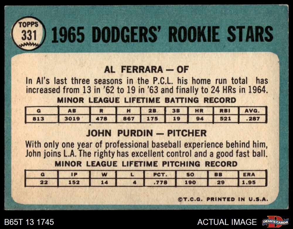 1965 Topps #331 - Al Ferrara / John Purdin Dodgers Rookies 3 - VG