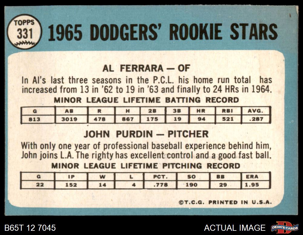 1965 Topps #331 - Al Ferrara / John Purdin Dodgers Rookies 5 - EX